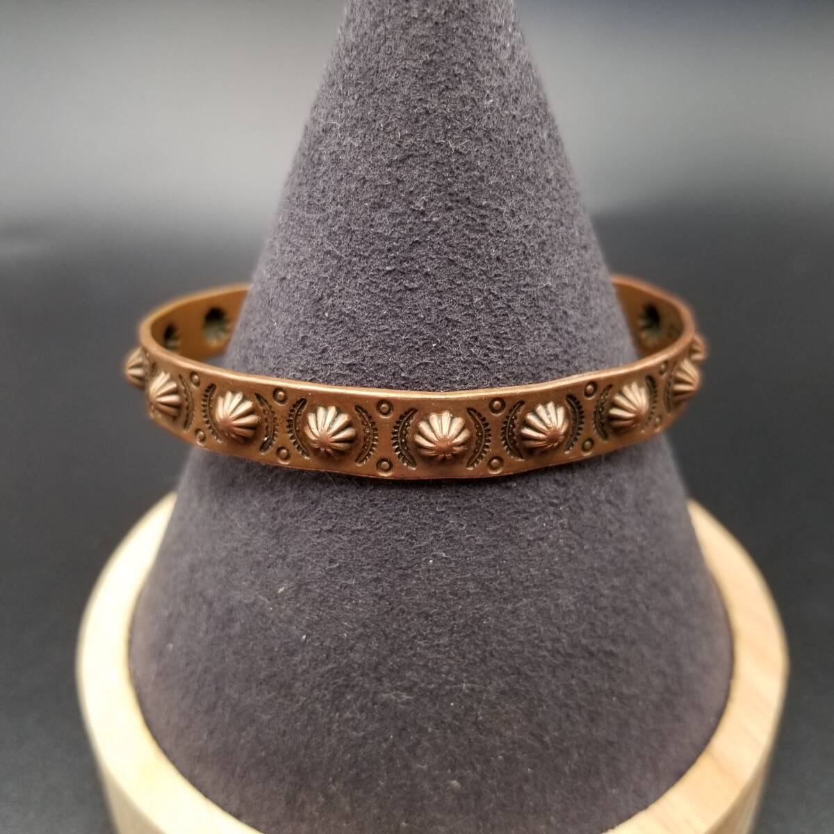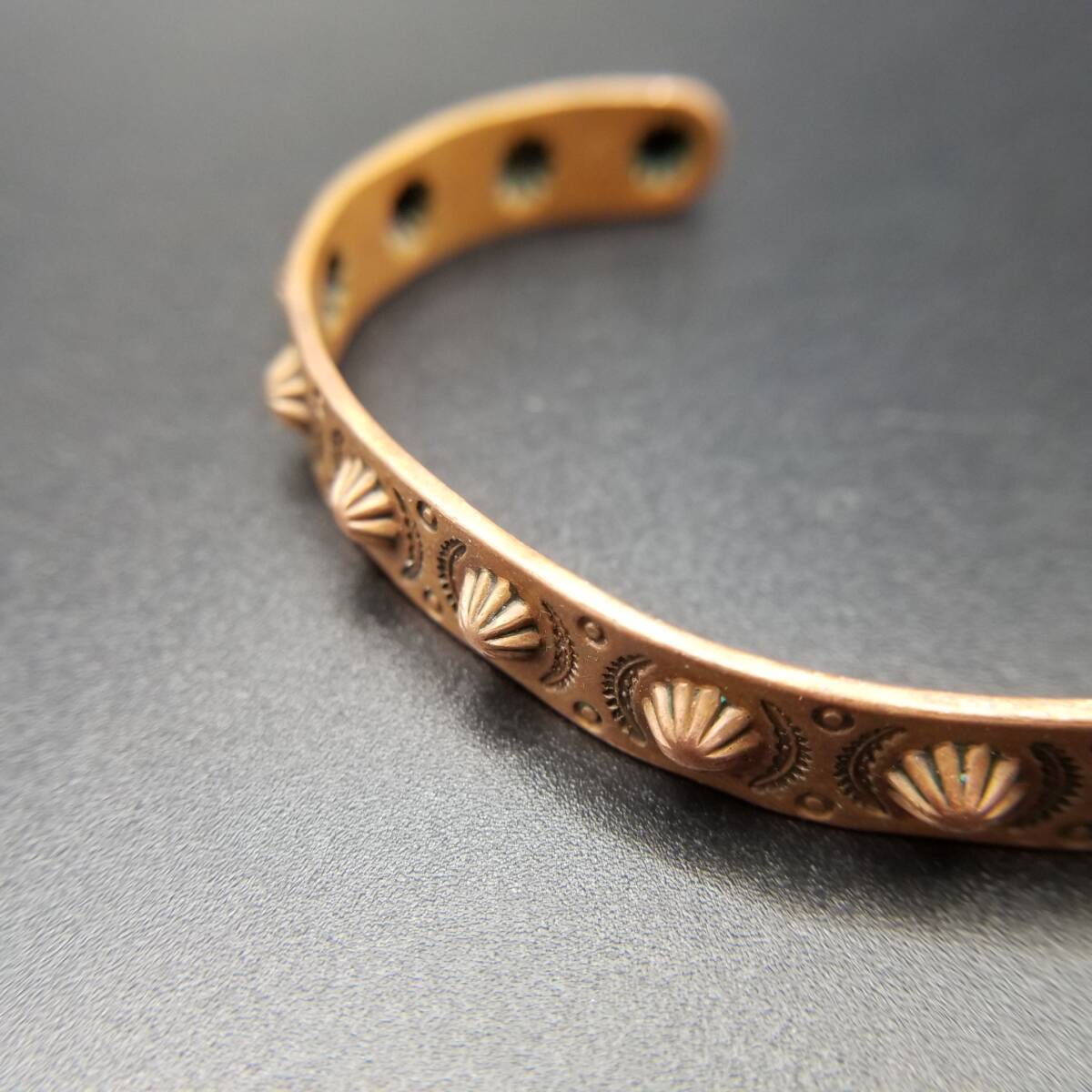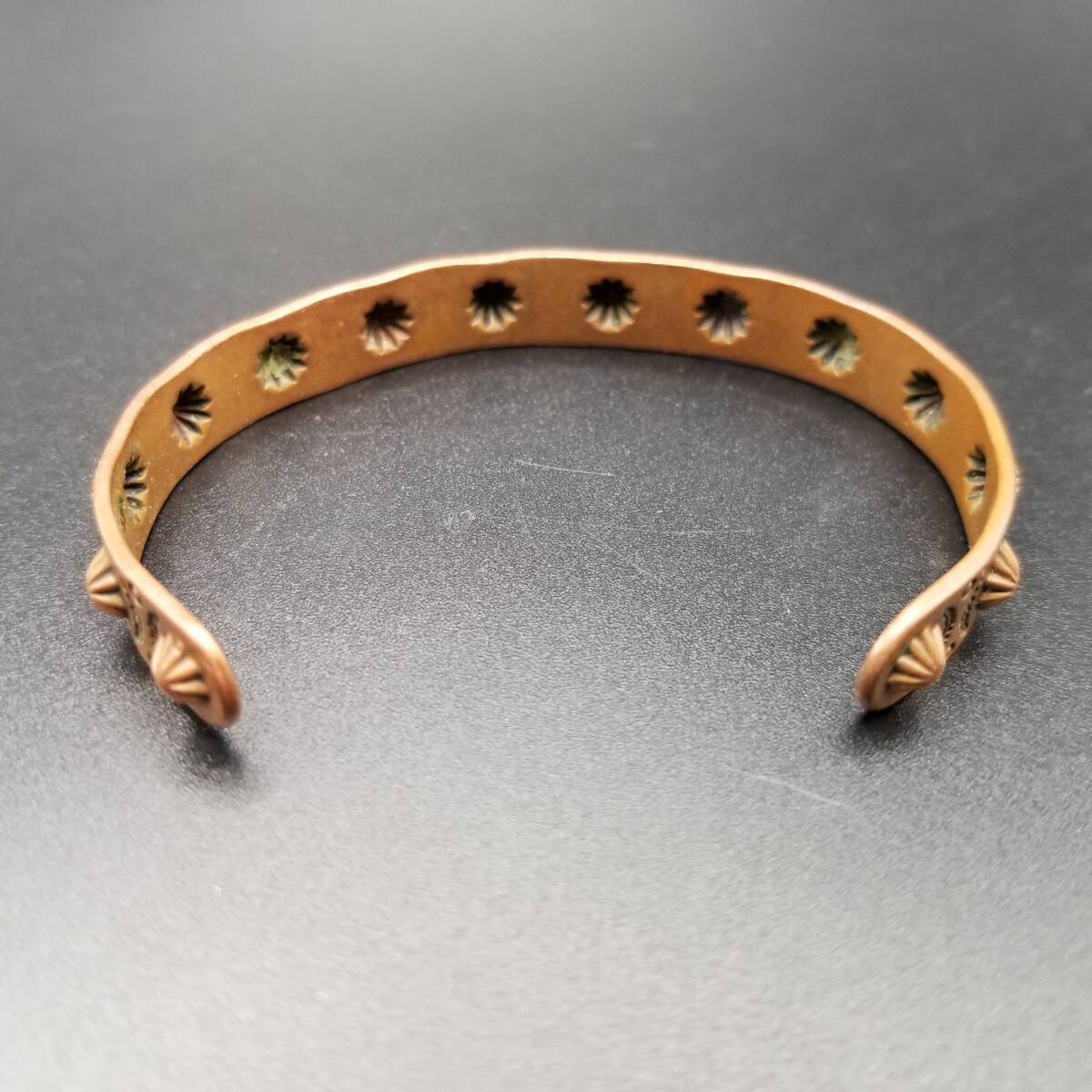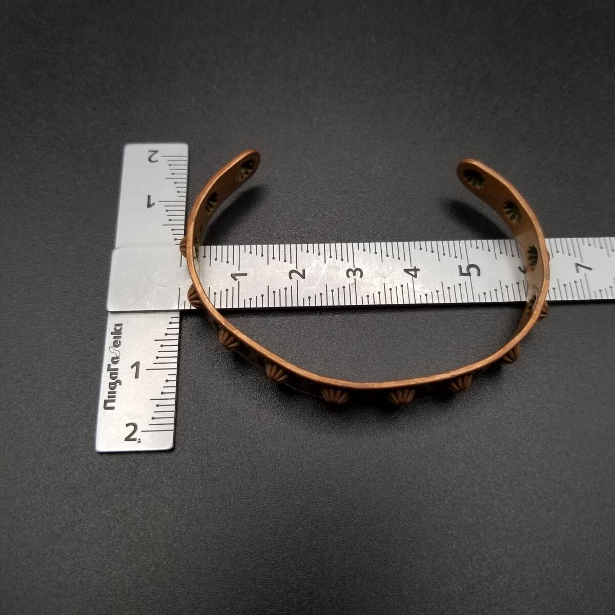 フラワー トゲトゲ デザイン スタンプワーク ヴィンテージ カフブレスレット バングル 銅/コッパー製 サウスウェスタンジュエリー R14-F