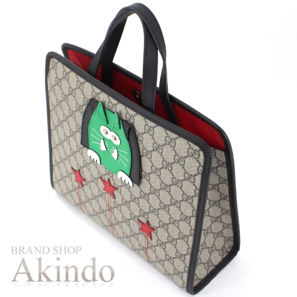 | グッチ チルドレンズからGGキャンバスの台形型トートバッグです。 開口部はオープン式で、高さ・マチも十分あるので収納力は抜群です。 キャットのデザインがかわいいですね。 新品・未使用商品です。 詳細は写真にてご確認下さい。 KM2909 | |