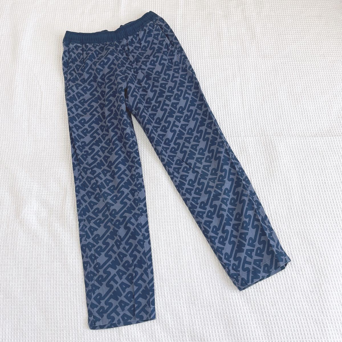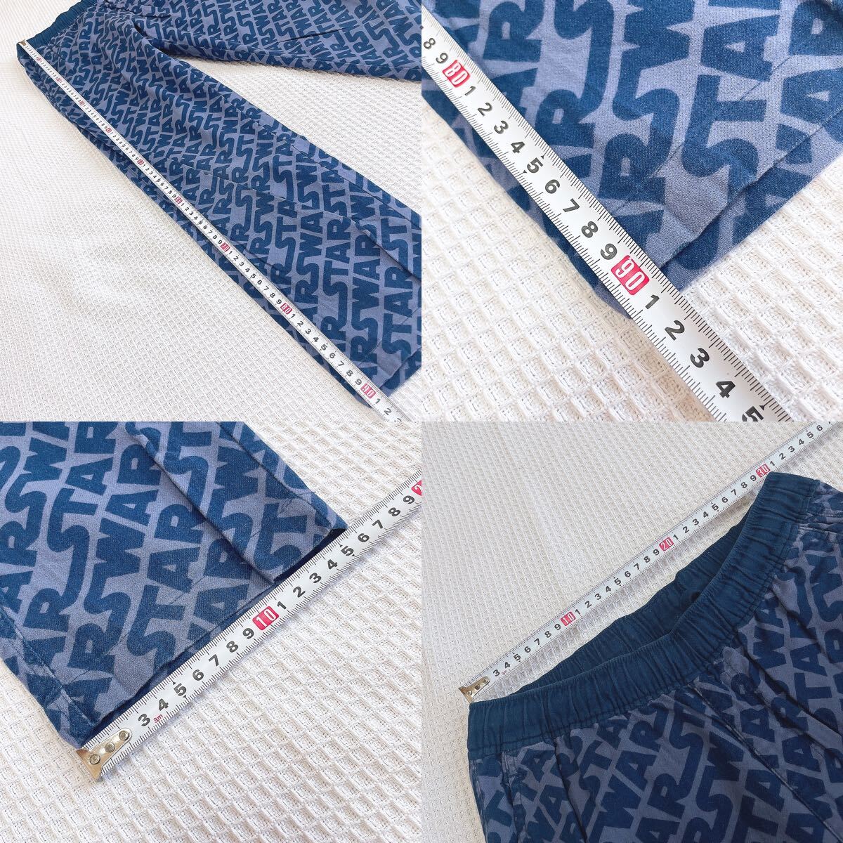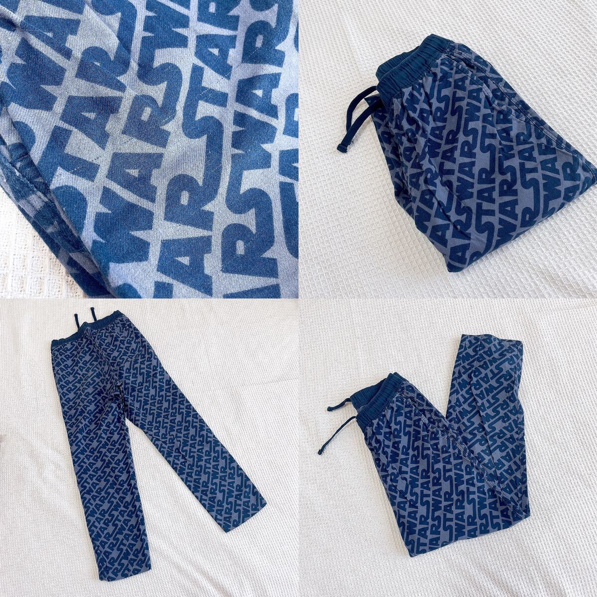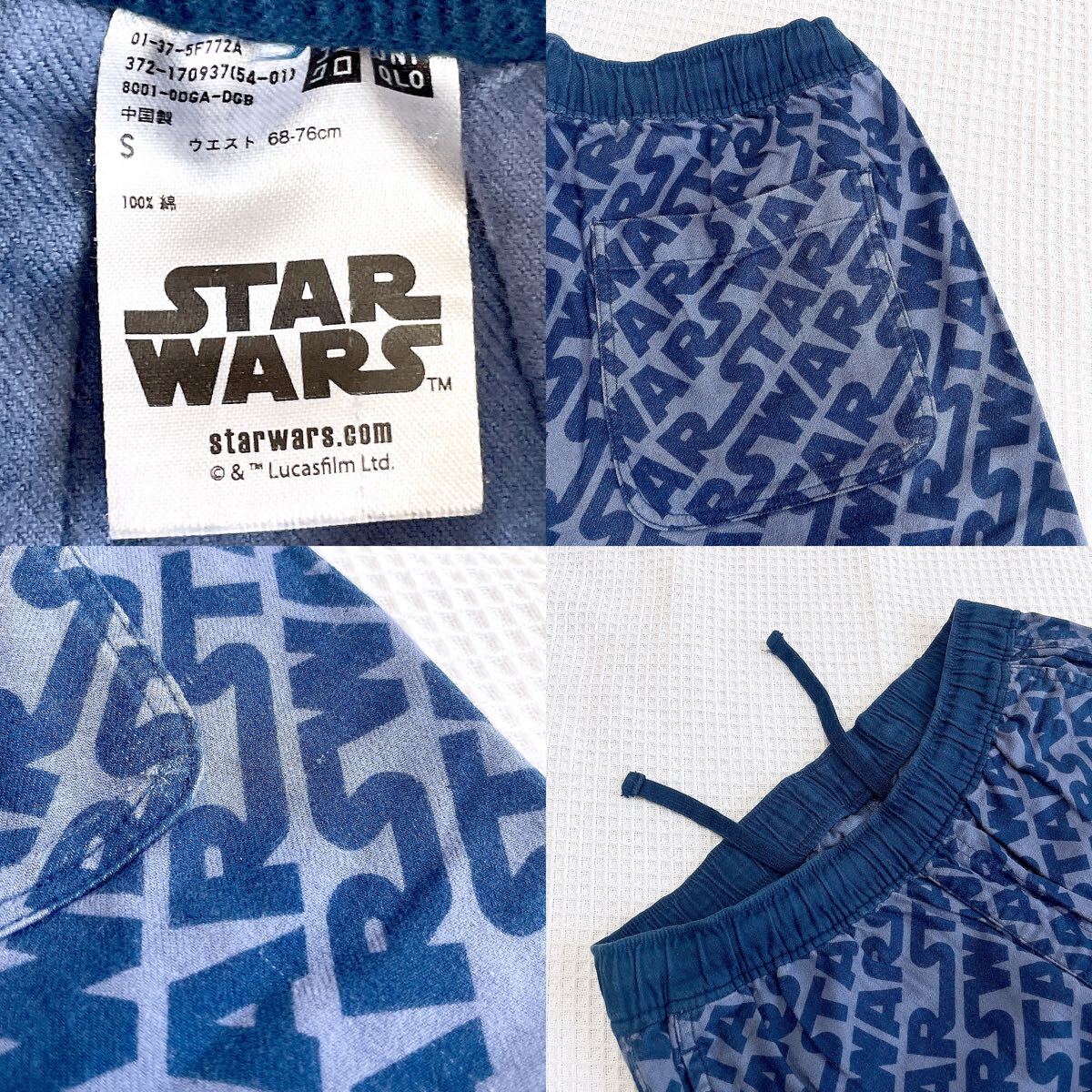 希少ユニクロ×スターウォーズUNIQLO×star warsネルパン フランネル素材ルームウェア パンツ ボトムSサイズ青ブルー総柄パジャマ ロゴ