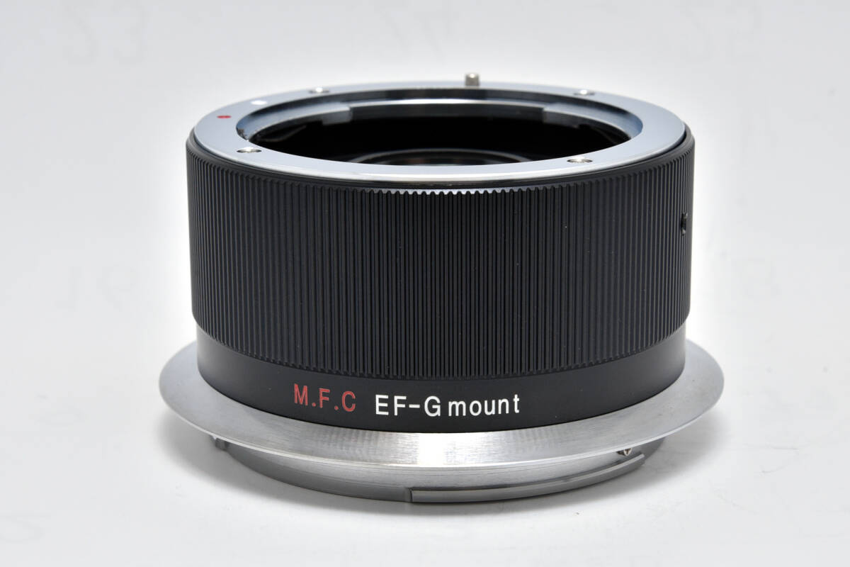 「MFC」はキヤノンEF/ニコンFマウントのフルサイズレンズを中判ミラーレス一眼デジタルカメラ 富士フイルムGFXへ取り付けるための光学系内蔵アダプターです。
