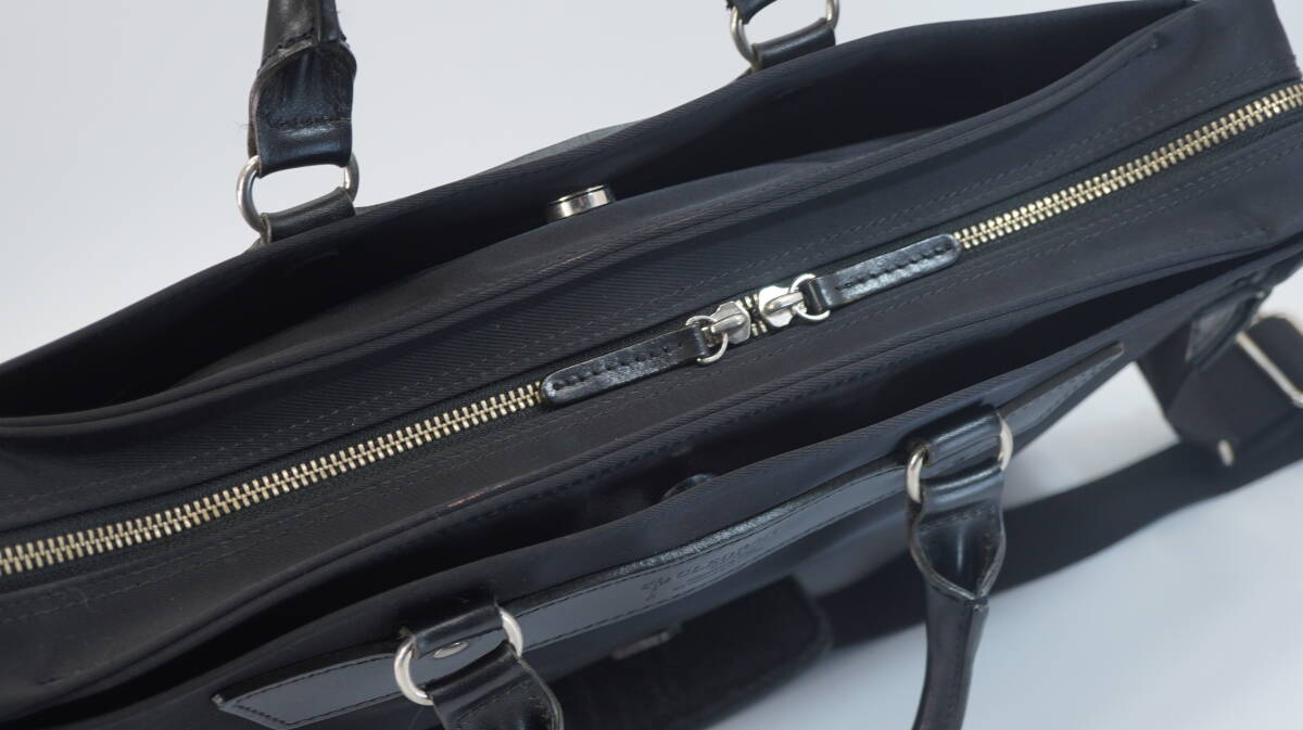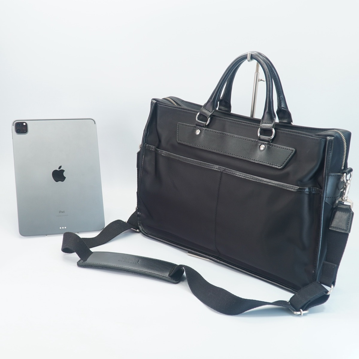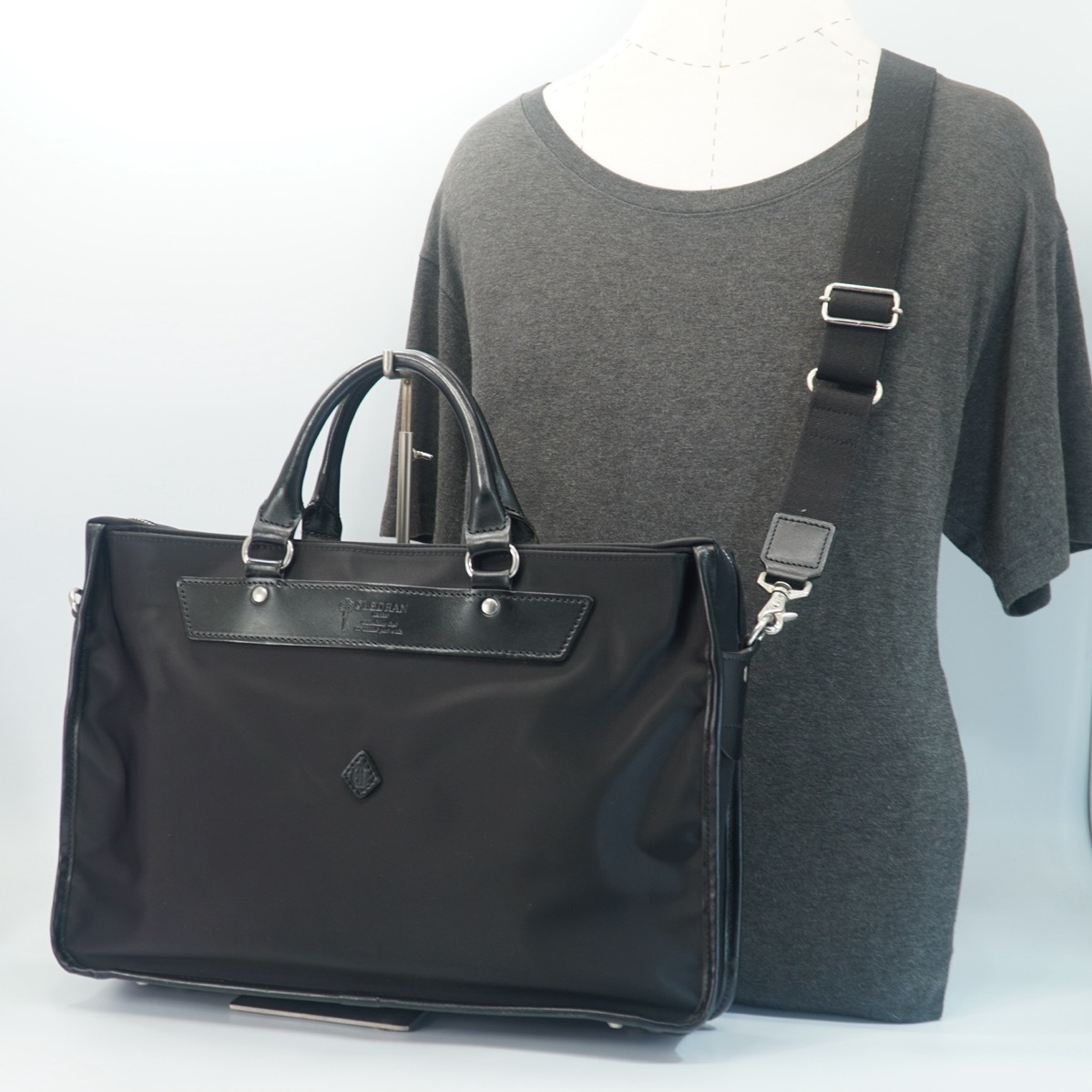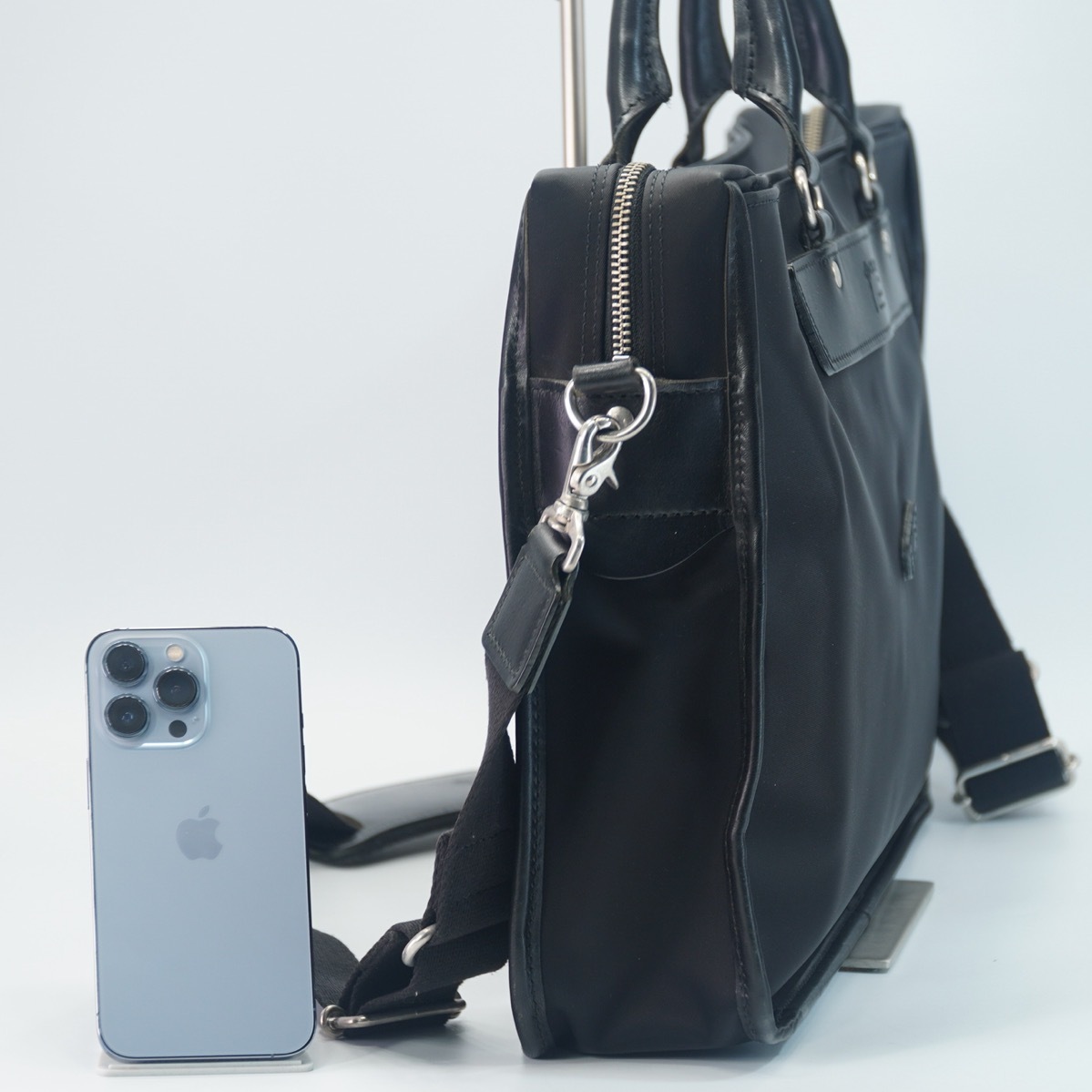 軽量で強靱なナイロンをメイン素材に採用し、より耐久性を必要とする各パーツに牛革を使用しています。