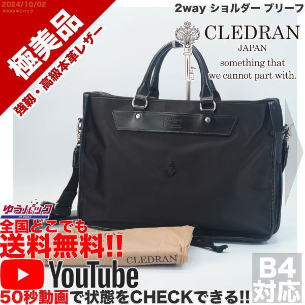 送料無料 即決 YouTube動画アリ 定価30000円 極美品 クレドラン CLEDRAN 2way ショルダー ブリーフ レザー 牛革 バッグ