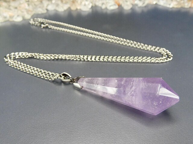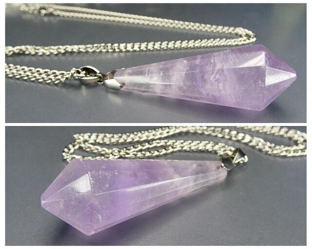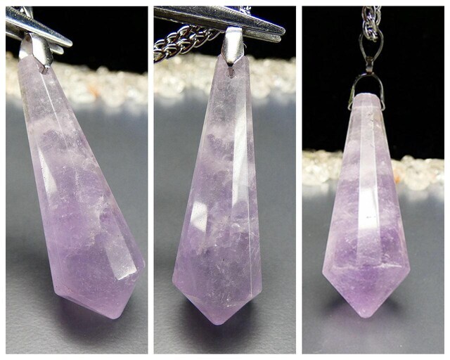 透明度有りラベンダーアメジスト手作りしずくカット天然石ステンレスネックレスプライム