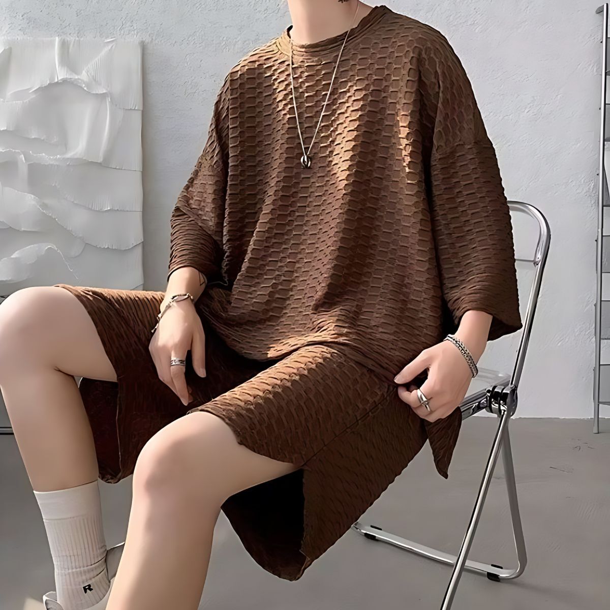【使い勝手抜群】七分袖のTシャツとハーフパンツの上下セットアップです。上質なポリエステル生地で、着心地も抜群。親友や彼氏へのクリスマスギフトや誕生日プレゼントとしてもおすすめます。