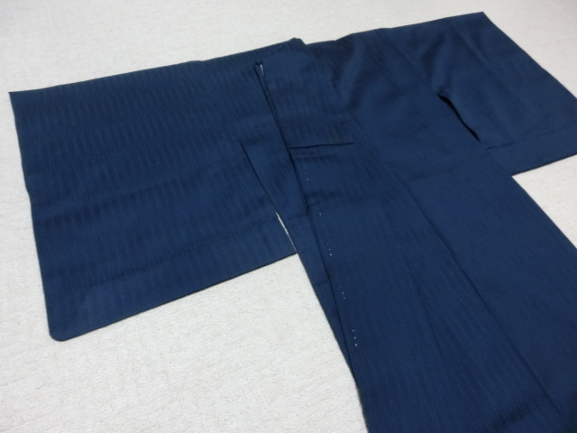 | 【昭和レトロ】ウール 織着物 単衣 紺色 立涌柄 色無地 普段着 | |