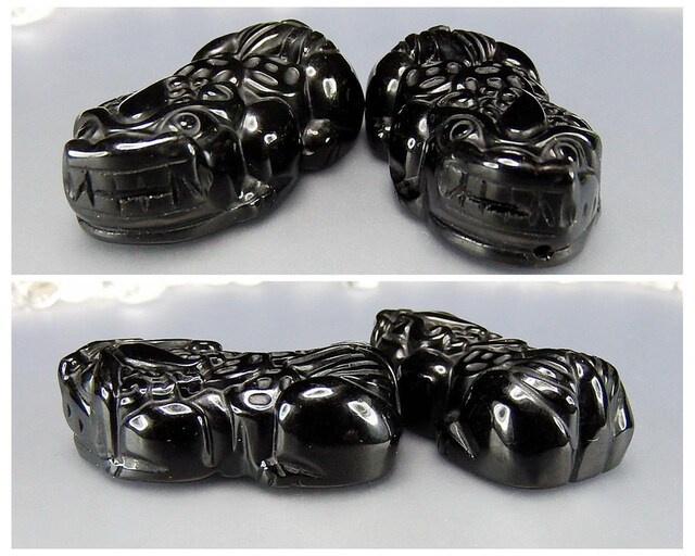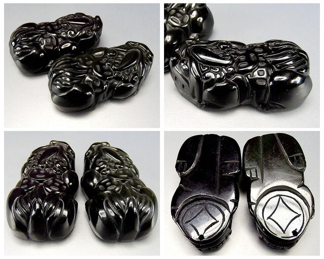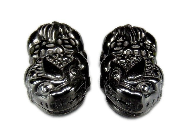 超大サイズ 天然石3Aメキシコ産オブシディアン金銭ヒキュウ彫刻ペア