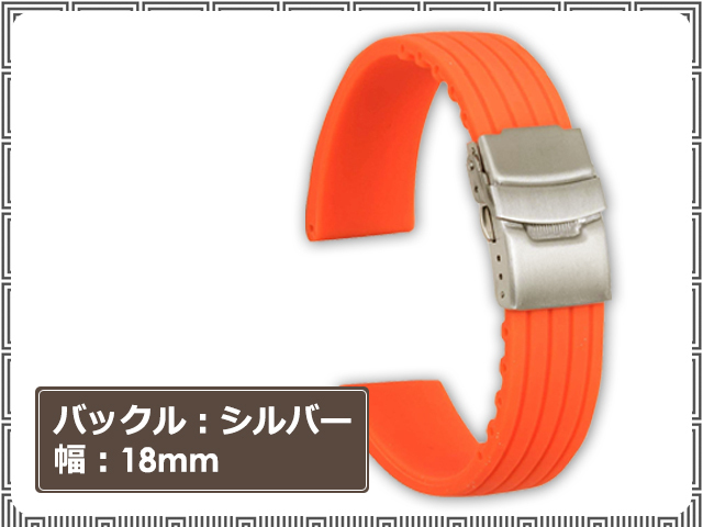 時計バンド 交換ベルトシリコーンゴム 腕時計ストラップ 18mm シルバー金具×オレンジ