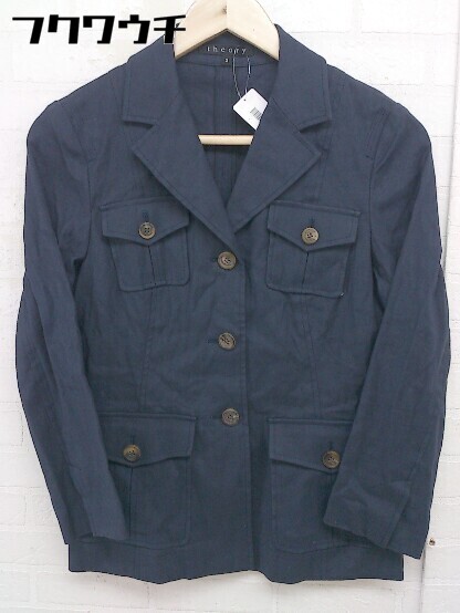 ◇ Theory セオリー リネン混 シングル3B 長袖 ジャケット サイズ2 ネイビー レディース