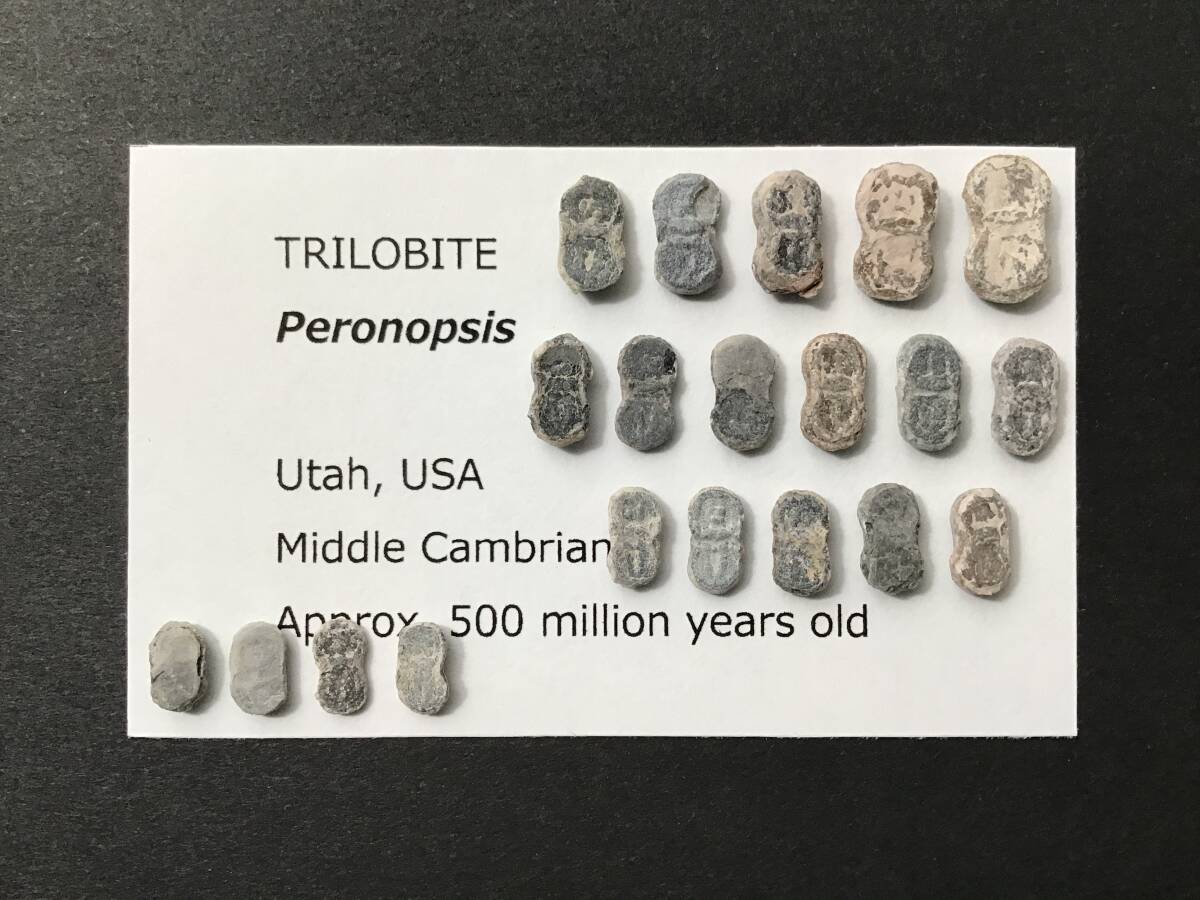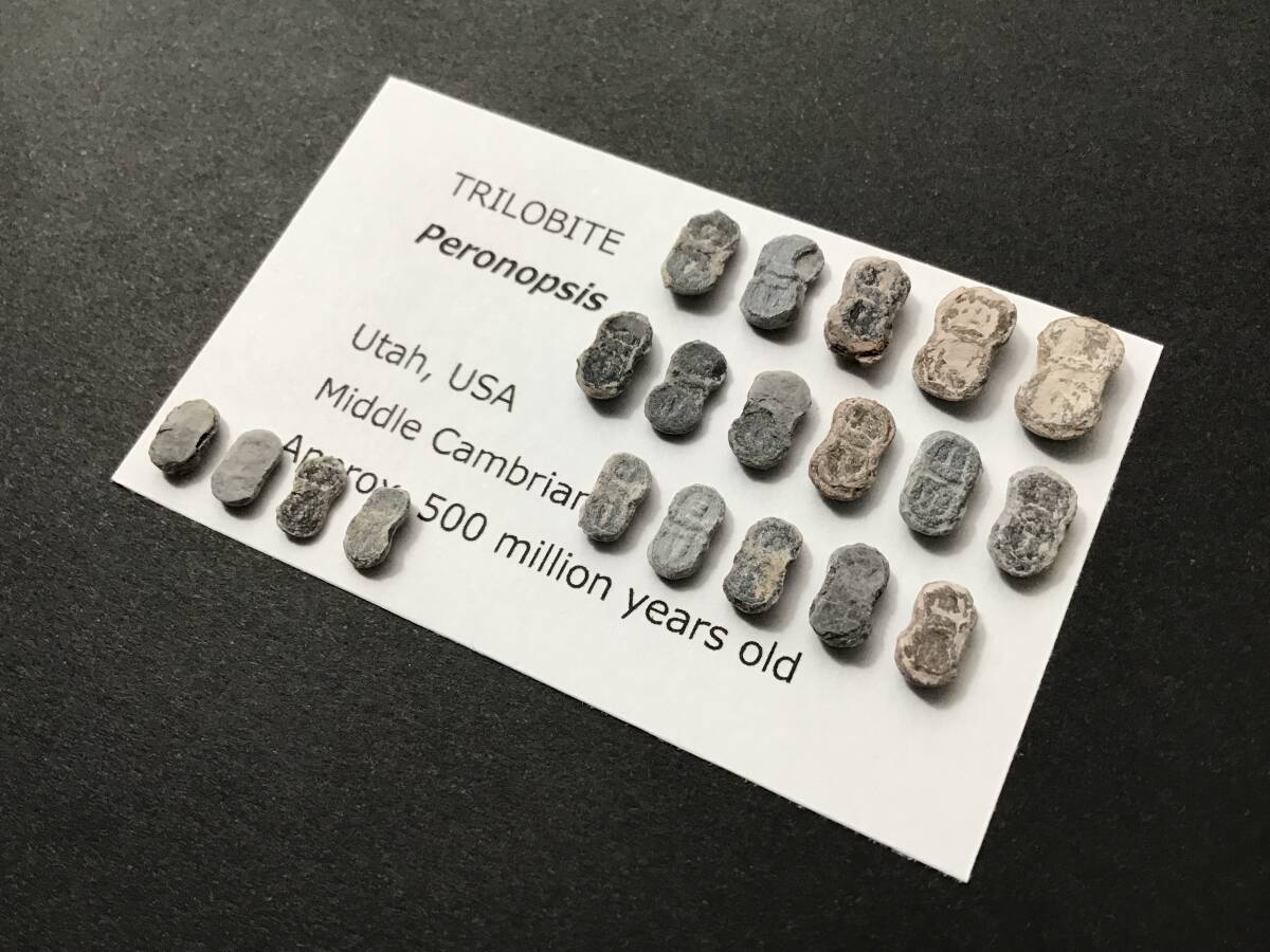 母岩から取り出された三葉虫「ペロノプシス」の化石 × 20個です。