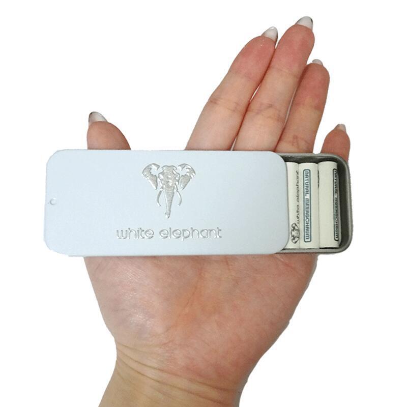 | 商品説明 | 【White elephant メシャムフィルター 9mm】 ホワイトエレファントのメシャム(海泡石)粉砕片の9ミリフィルター10本入りです。 メシャムは、主に水分を吸着しますので、たばこの喫味を変えず、ドライスモーキングが愉しめます。 9ミリダボのパイプ、またはシガレットホルダーに装填してご使用ください。 |