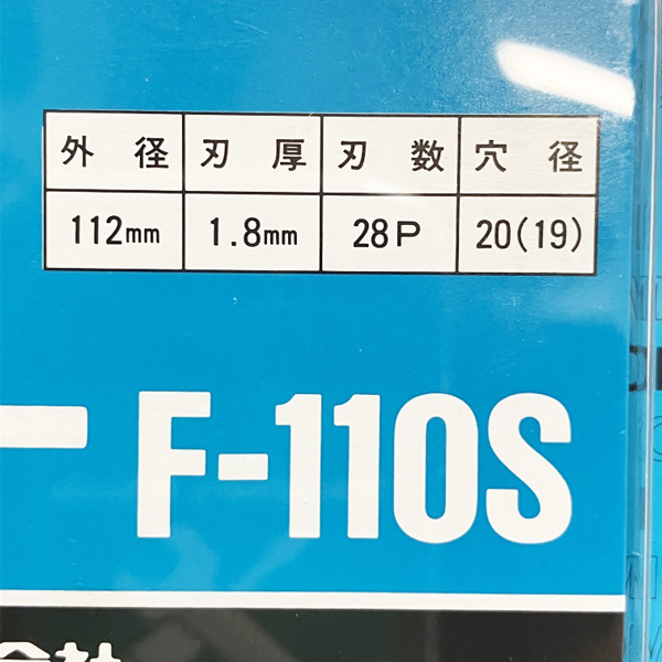 | 規格・仕様 | 外径:112mm 刃圧:1.8mm 刃数:28P 穴径:20(19) |