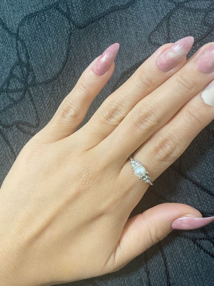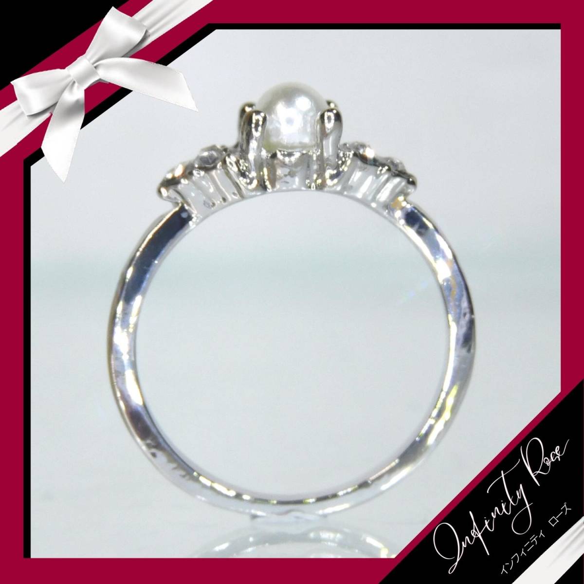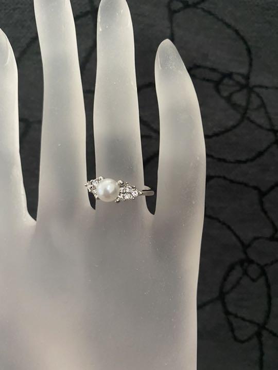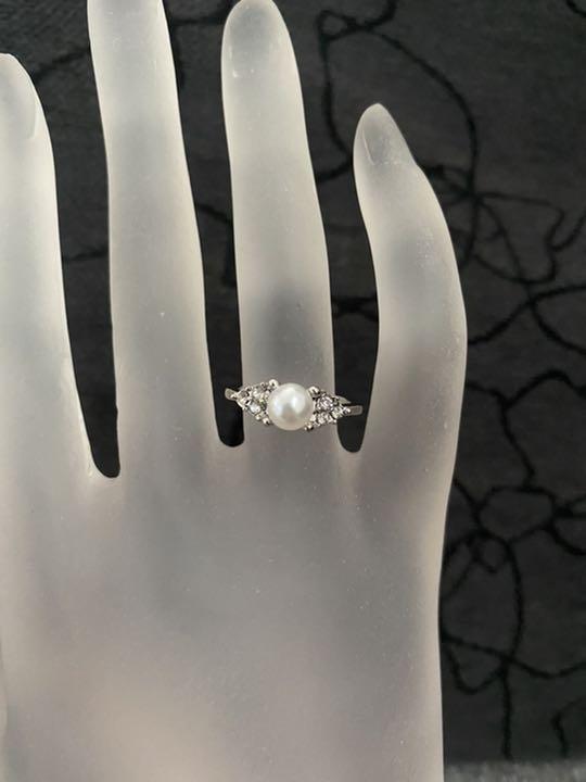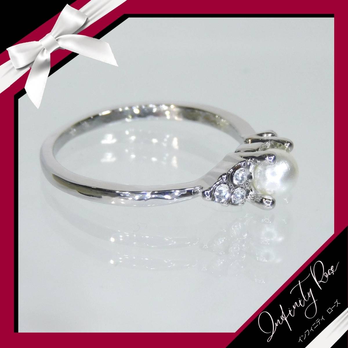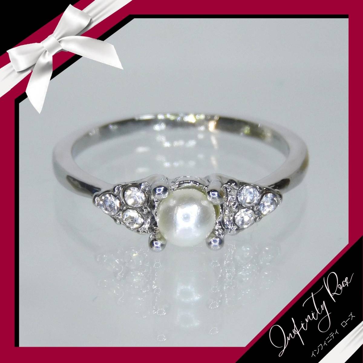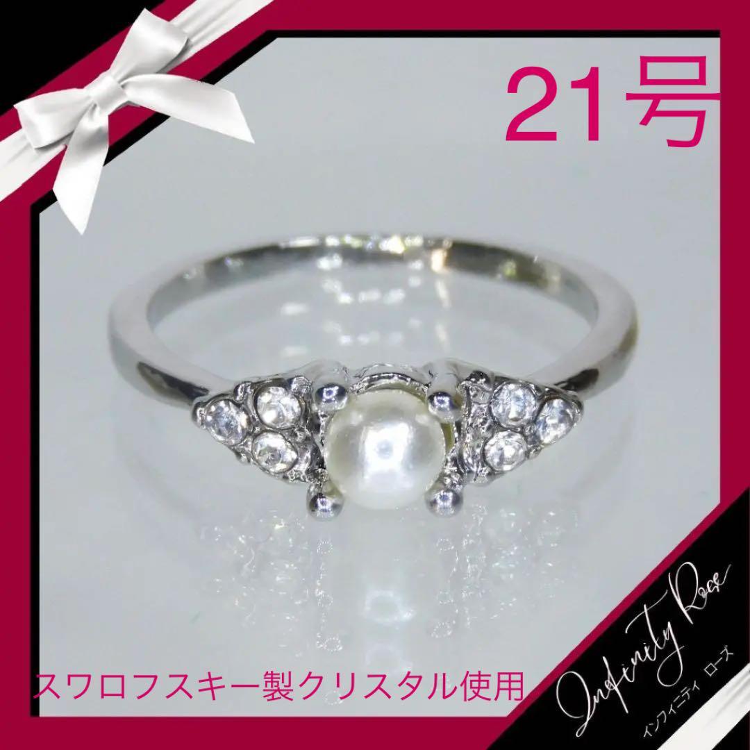 (1027)21号 ホワイトパールとスワロフスキー製クリスタル使用のシンプルリング 清楚な指輪