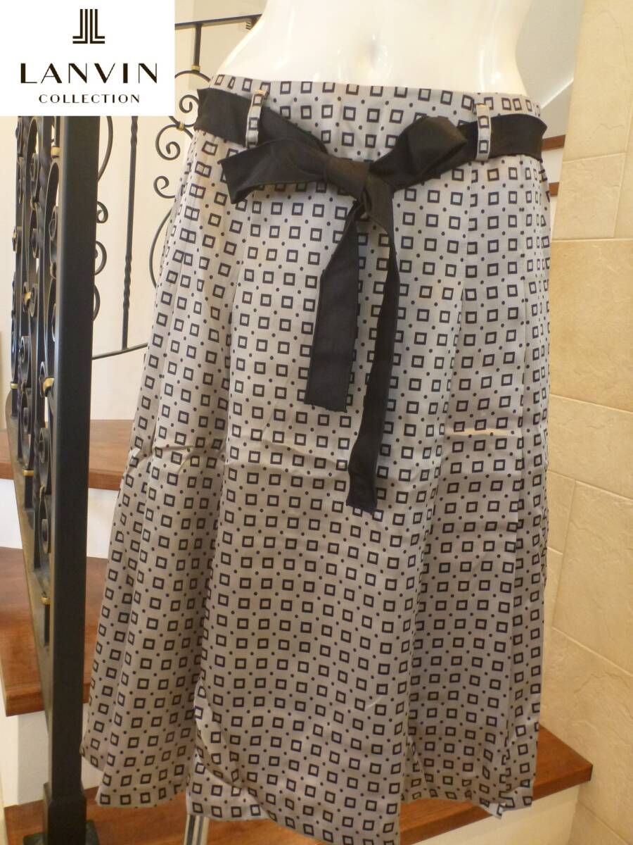 6.8万 超美品 LANVIN collection|ランバン コレクション ★グレー×黒 リボン スカート 40 L相当