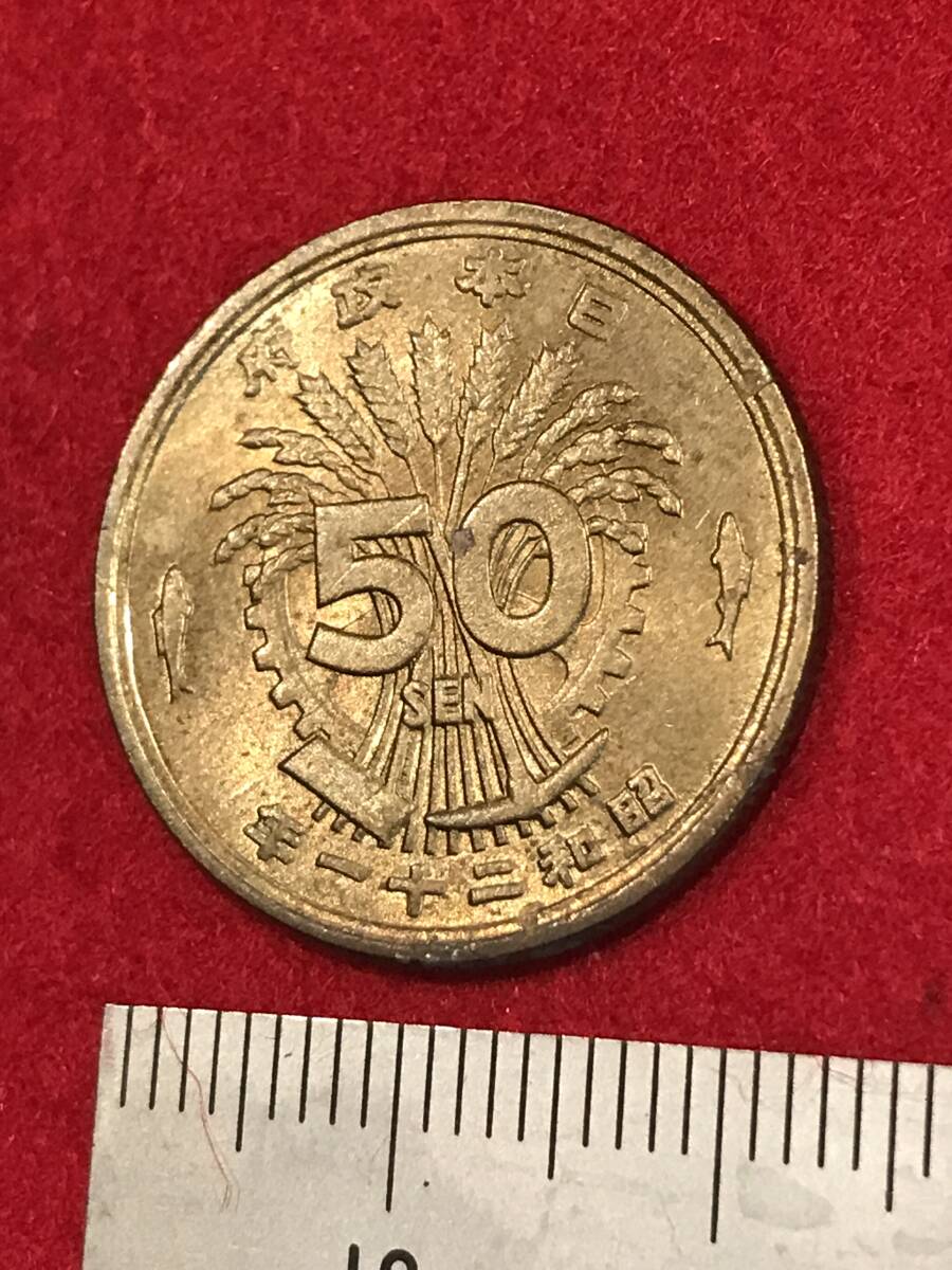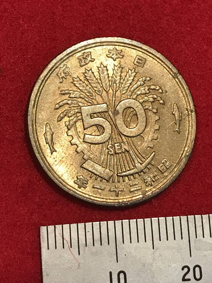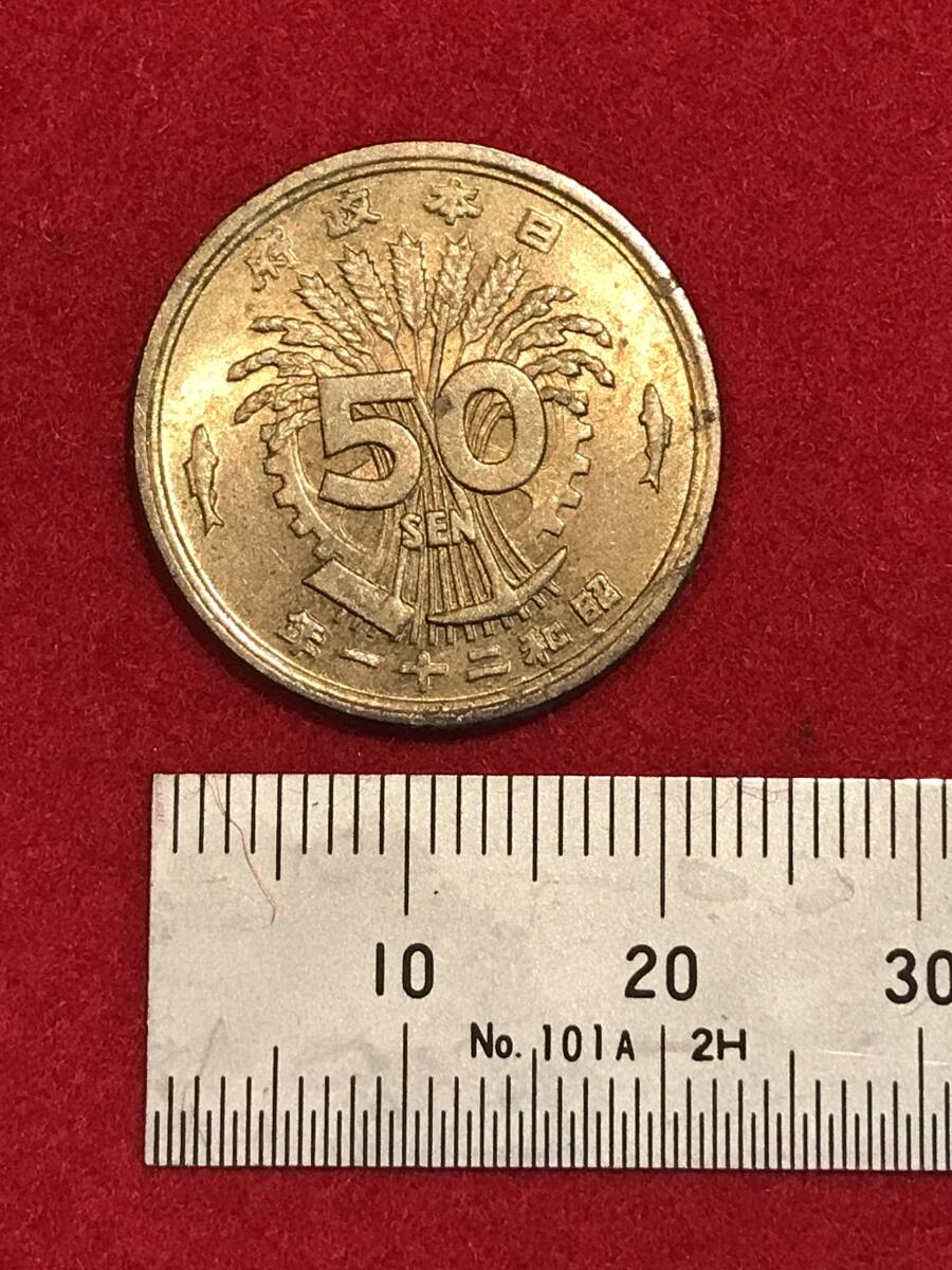 A8163●日本 貨幣 古銭 硬貨 【50銭】昭和21年 アンティークコイン φ2.3㎝ 約4.4g キズ汚れなどあり。