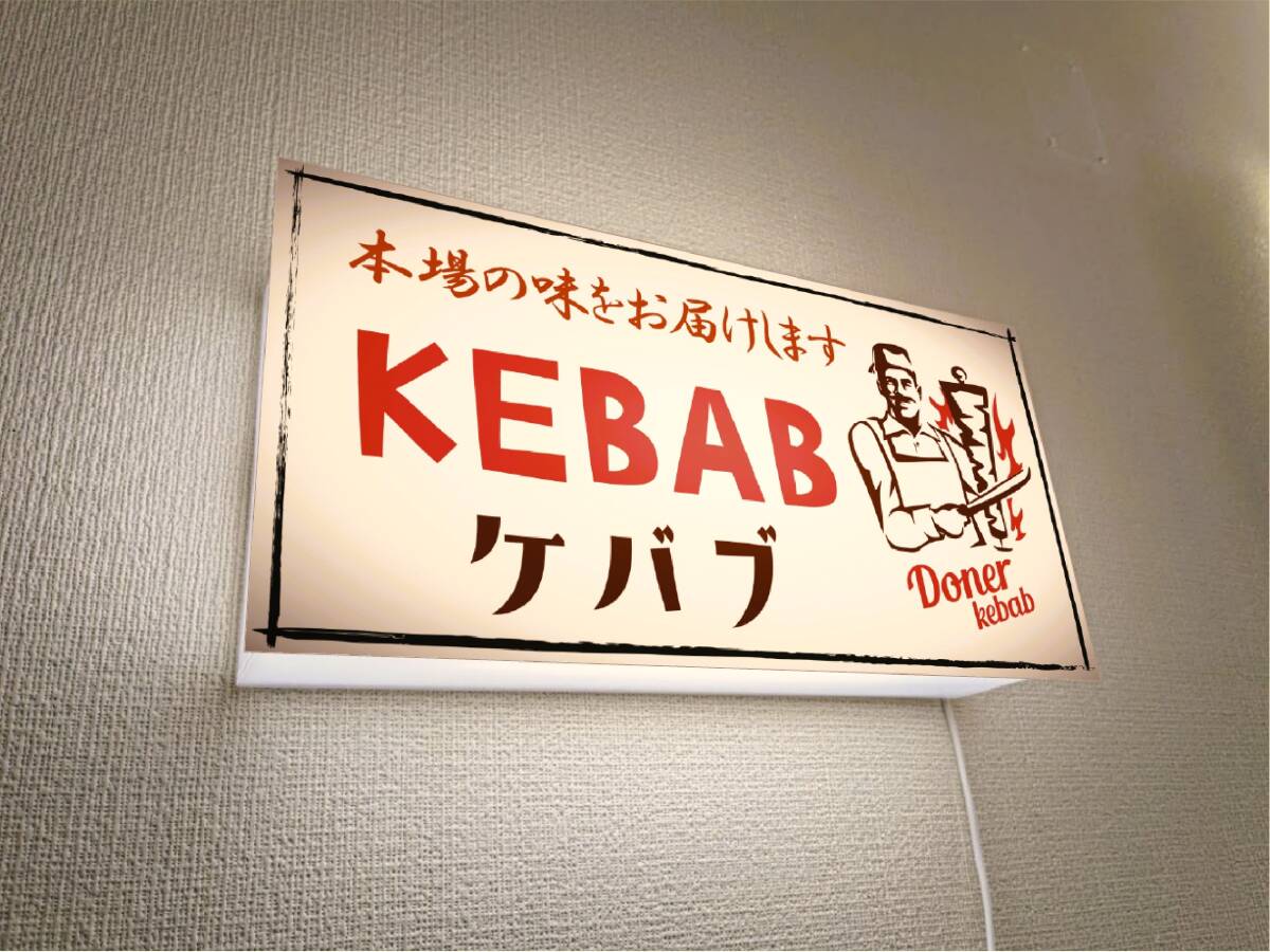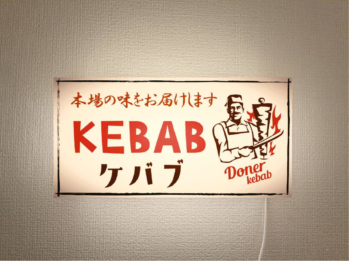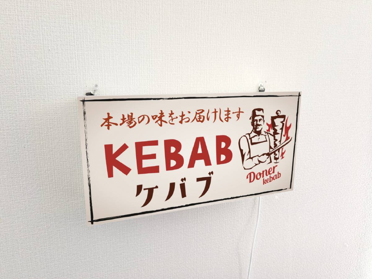 ★画鋲で壁に簡単設置★置物としても◎★ 店舗、自宅、ガレージ、オフィスの窓際・カウンター・棚・テーブルやちょっとしたスペース、車内・キッチンカー・屋台・イベント・パーティーなどに 【ケバブ トルコ料理】電飾看板Lサイズです★ オーダー無料、プレゼントにも大変好評頂いております★ ◆サイズ◆20センチ×40センチ×奥行き7センチ ◆材質◆本体(アクリルプラスチック製)・表示面(IJバックライト発光フィルム貼り) ◆電源◆USB供給電源(家庭用コンセントコネクタ付き) 〇他サイズ〇 ●Mサイズ 150mm×300mm ●LLサイズ 300mm×600mm ●3Lサイズ 400mm×800mm ●4Lサイズ 500mm×1000mm ◆オリジナルデザイン・オーダーも承っておりますので、お気軽にお問い合わせください。 自社製造製品 店舗 自宅 キッチンカー フードトラック 屋台 パーティー イベント サイン ランプ ライト 照明 看板 インテリア雑貨 置物 雑貨 テーブル カウンター 電飾看板 電光看板 光源の種類...LED