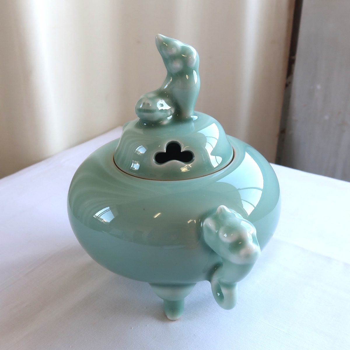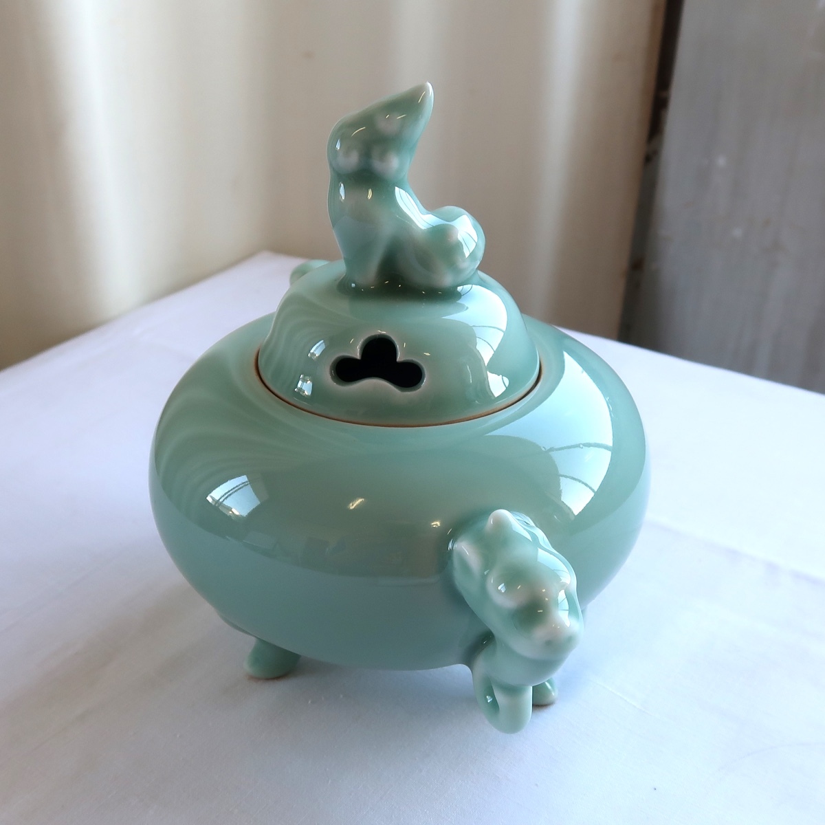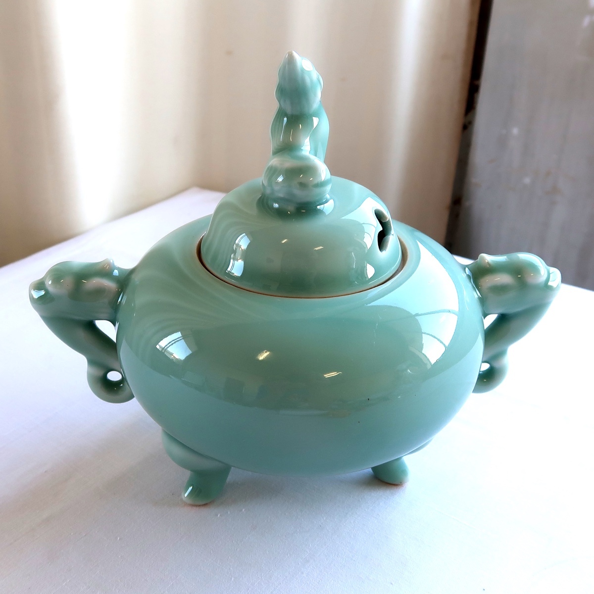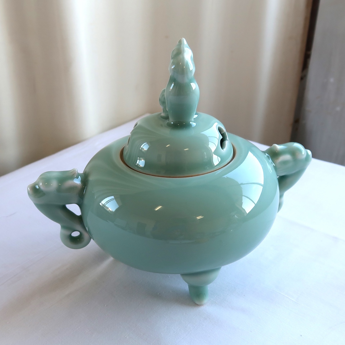 隆山 青磁 香炉 茶道具 香道具 未使用 長期保管品です。