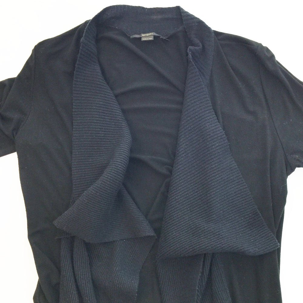 | コメント | 身頃は伸びの良いカットソー素材で通気性が良く、薄手で軽いので通年様々なシーンで着用しやすい素材感です。襟から前身頃へかけてのニット生地のドレープがエレガントな印象です。 状態はUSEDです。ブランドタグ近くの襟に薄い汚れ(写真4)がございます。全体的に毛羽立ち、使用感はありますがこれからも着用いただけます。ご理解のある方のご購入をお待ちしております。 |