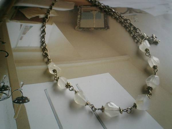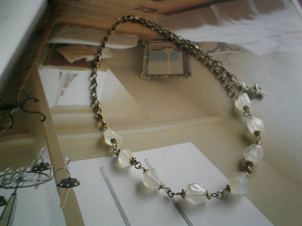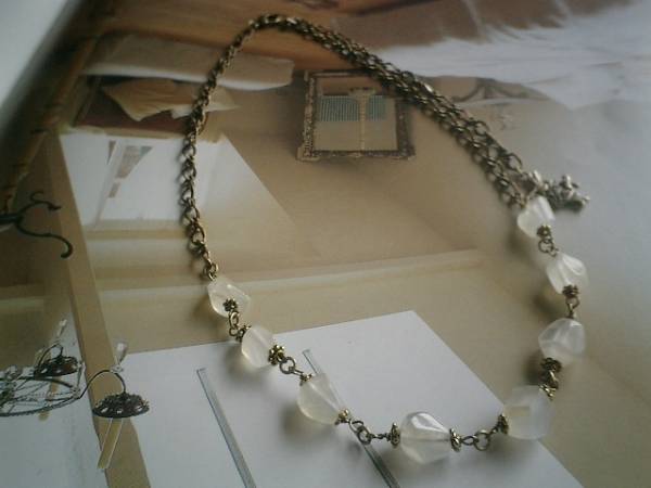仏蘭西映画みたいに・・シリーズです♪幻想的なムーンストーンのネックレスです♪シラーが美しいホワイトライトグレームーンストーンは10ミリから12ミリ位のラフカットです♪シックな座金でおめかしして可憐な表情です♪長さは全長58センチ位で調節自由です♪チョーカー風にされても素敵です♪お揃いのブレスレットも出品しています♪シンプルで飽きのこないいつまでも着けられるデザインを考えて作りました!ハンドメイドをご理解頂いてノークレーム、ノーリターンでお願いします