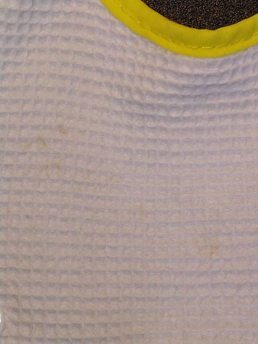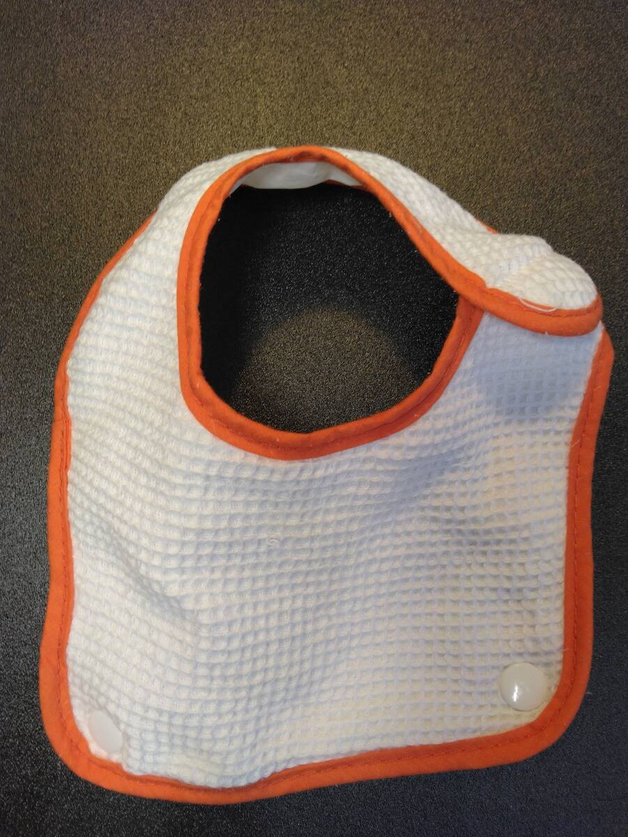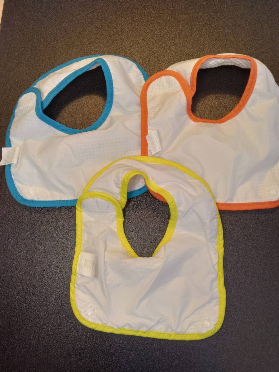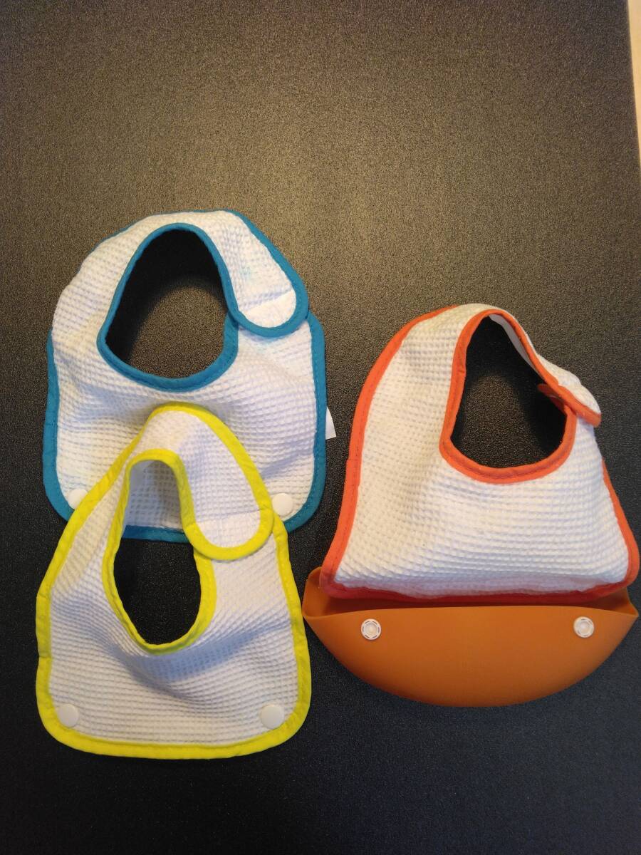 | 商品をご覧いただきありがとうございます。 商品説明欄の下にある注意事項をよくお読みになり、商品をご検討ください。 brothermaxnのベビー用お食事エプロンです。 スナップボタンで食べこぼし受けポケットとつなげて使用します。 使用後はポケットに入れて清潔に持ち帰ることができます。 表生地はぽこぽことしたワッフル素材です。裏側は防水布仕様です。 酸素漂白剤で洗浄しましたが、青と黄色のエプロンはシミが取れませんでした。青は素材の青い色移りがあります。 オレンジ色も目立つシミはありませんが、中古自宅保管品ですので毛玉や小さな傷や汚れ、ホコリの付着、色褪せ等あります。新品のような完璧をお求めの方はご入札をお控えください。 サイズ 前掛け部:約20×12㎝ 首周り:約34㎝ ポケット:約22×8×2.5㎝ ※お値下げ交渉不可です※ ■付属品はありません。 ■文字や写真だけで全てのダメージをお伝えすることは難しいため、 記載にないダメージがある場合があります。 ■細かい状態を気にされる方や臭いに敏感な方は恐れ入りますがご遠慮ください。 ■中古保管品につき傷や汚れ、色褪せなどあります。 ■小さく折り畳んで梱包します。 | ||
