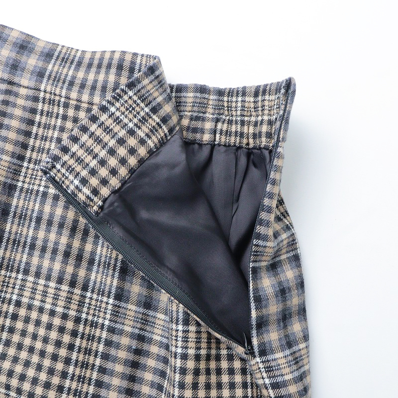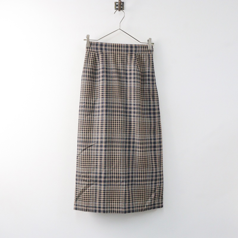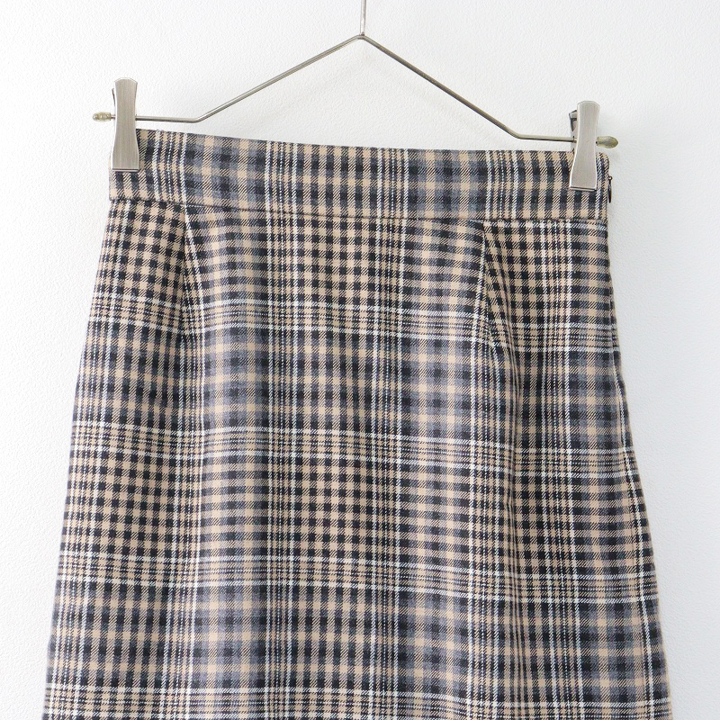 フレームワーク FRAMeWORK ヘリテージチェックタイトスカート 36/ベージュ ウール スリット ゴム【2400013977302】