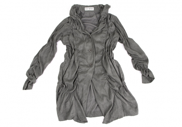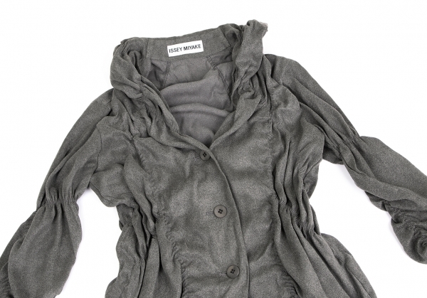 | イッセイミヤケISSEY MIYAKE ポリギャザーデザインロングジャケット グレー2 |