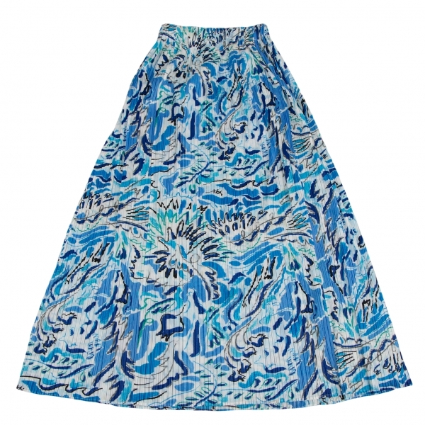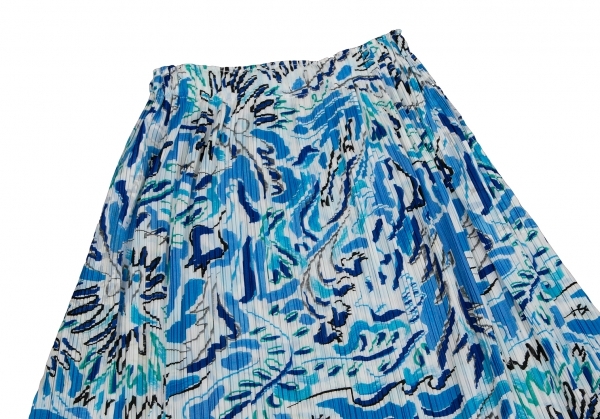 | プリーツプリーズPLEATS PLEASE PLAYING 総柄プリントプリーツスカート 水色白5 |