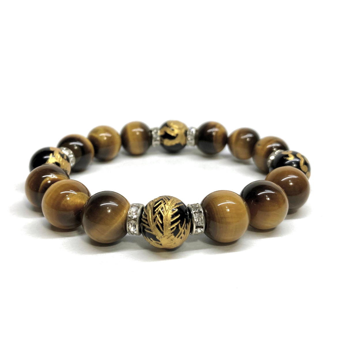 こちらは、四神獣金彫オニキとタイガーアイを組み合わせたパワーストーンブレスレットです。四神獣は、中国の伝説で4つの方向(東西南北)を守護する神聖な神。四神獣、厄災から身を守り、多くの運気を呼び込むと言われております。石大きさは程よくインパクトのある12mm玉で内周 約17cmです。 数に限りがございますので気になる方はお早めにどうぞ。