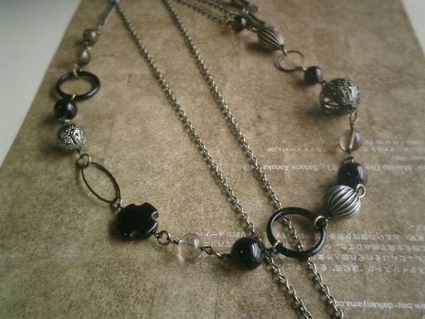 ガールズ・コレクション・・シリーズです♪モノトーン見本帖・・シックなオニキスのネックレス2点セットです♪短い方のネックレスは8ミリ、10ミリの丸玉、15ミリのクロス、20ミリのリングなど大きさ違い、デザイン違いのオニキスにスモーキークォーツや透かしチャームやデザインメタルを合わせてオリエンタルモダンしています♪長さは全長70センチ位で調節自由です♪チョーカー風にされても素敵です♪長い方のネックレスは繊細なチェーンに30×20ミリのオニキスのクロスやデザインリングを合わせてクラシカルな表情です♪長さは78センチ+アジャスター16センチで最長94センチ位です♪単品やお揃いのブレスレットも出品しています♪♪シンプルで飽きのこないいつまでも着けられるデザインを考えて作りました!ハンドメイドをご理解頂いてノークレーム、ノーリターンでお願いします