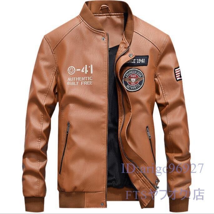V105☆新品裏ボア レザージャケット メンズ ライダースジャケット 革ジャケット 機車服 ショートコート ブルゾン 冬服 キャメル