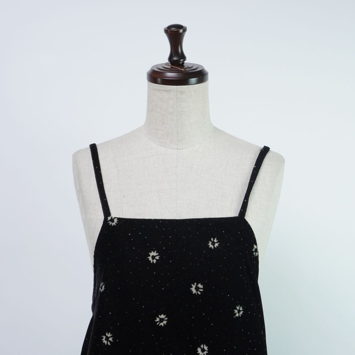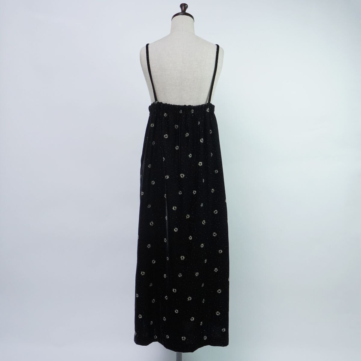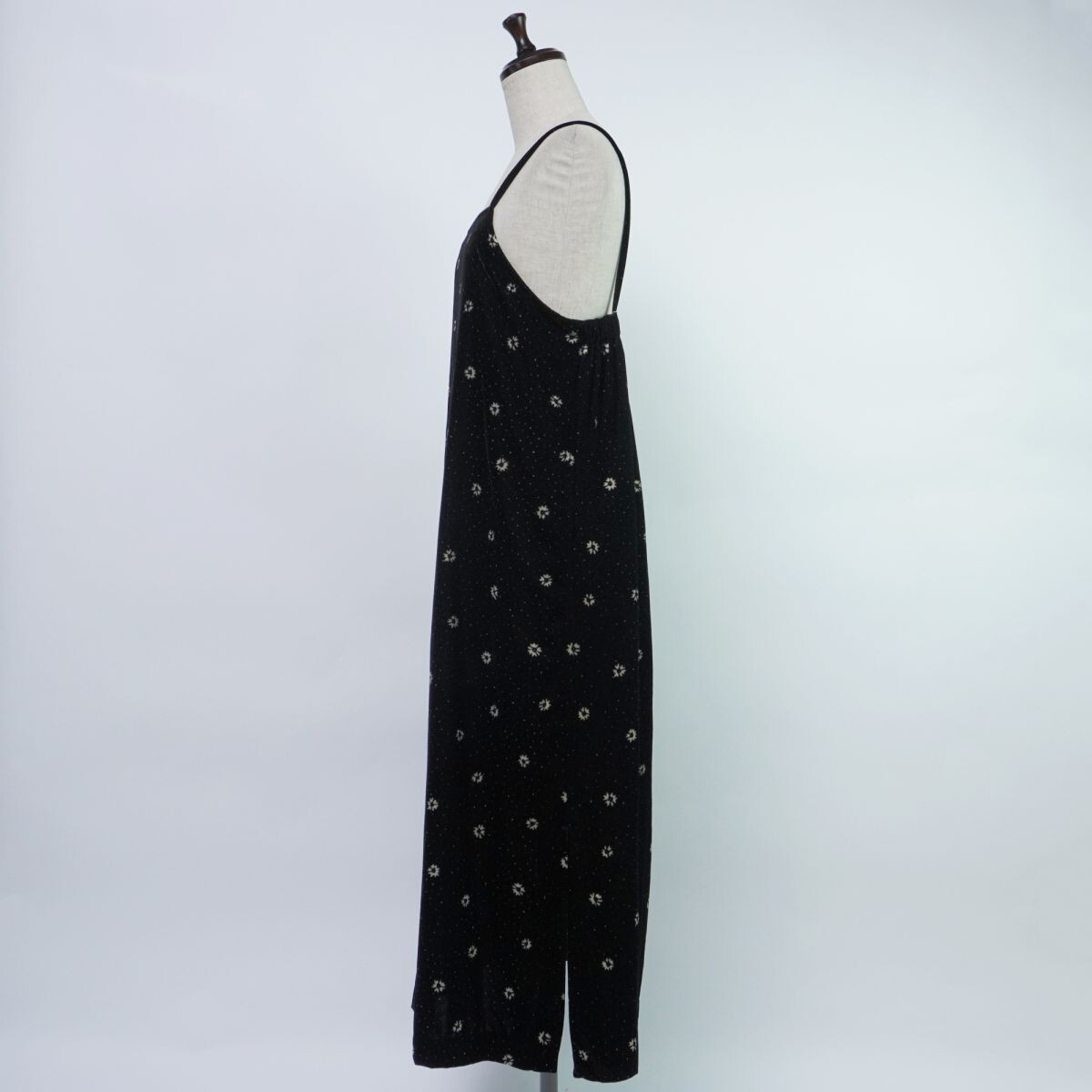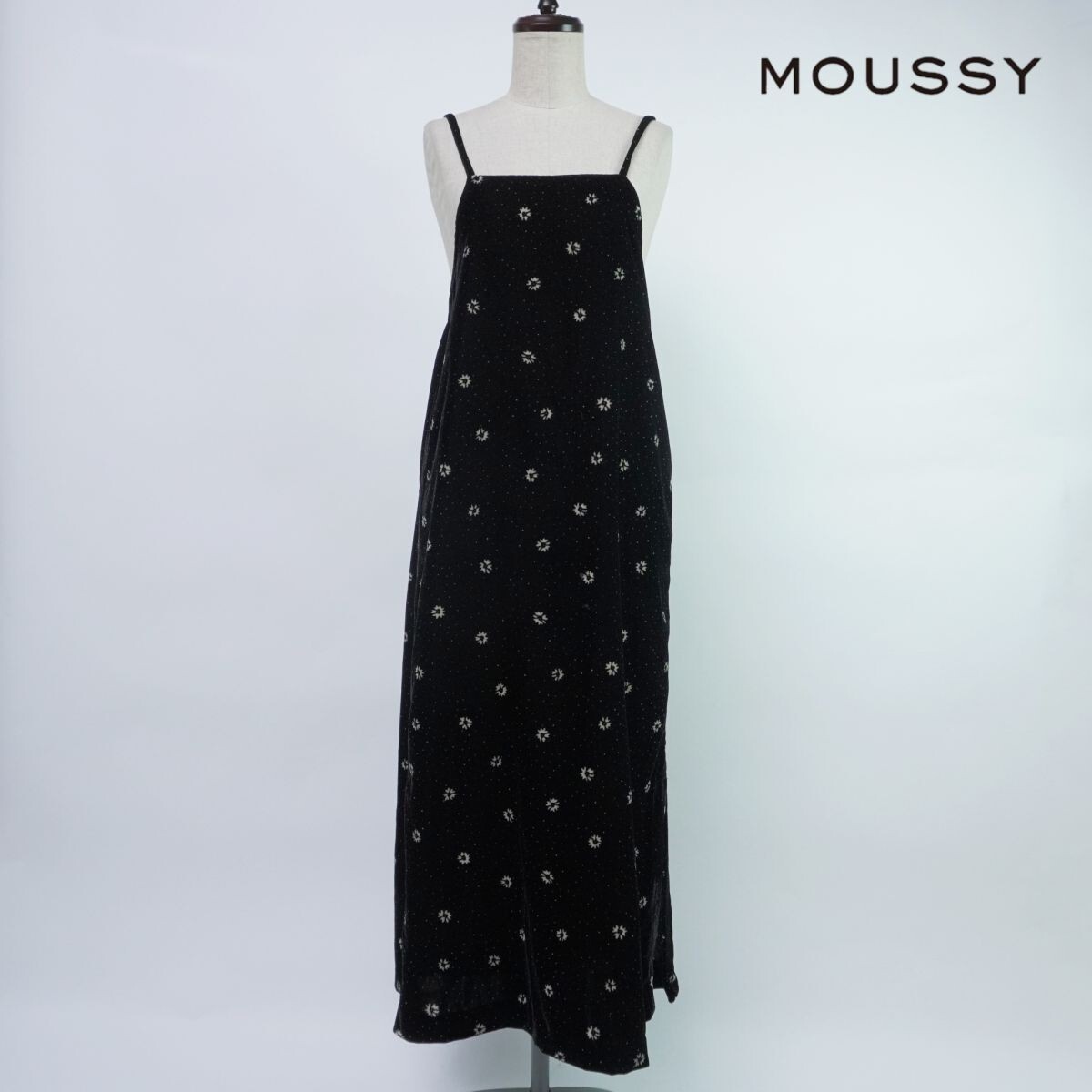 美品 MOUSSY マウジー ベルベット 花柄 キャミソールワンピース ロング丈 裏地あり レディース 黒 ブラック サイズ1*SC236