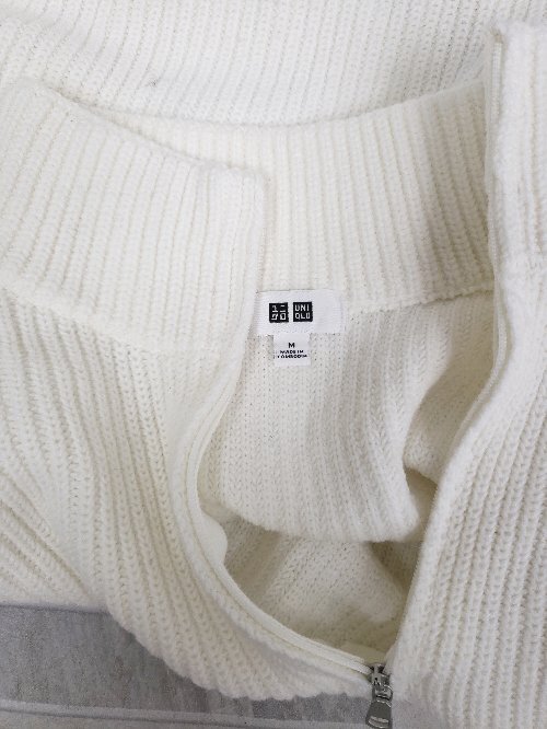 ◇ UNIQLO ユニクロ ハーフジップ 長袖 ニット セーター サイズM ホワイト メンズ P