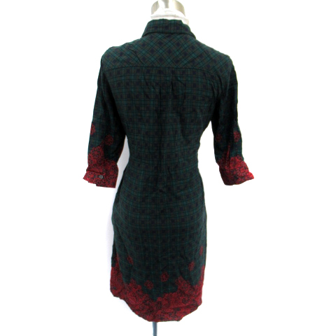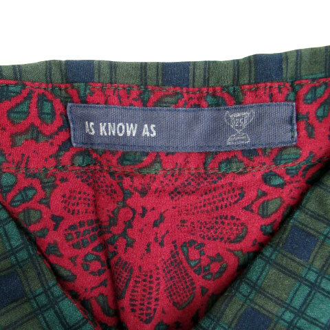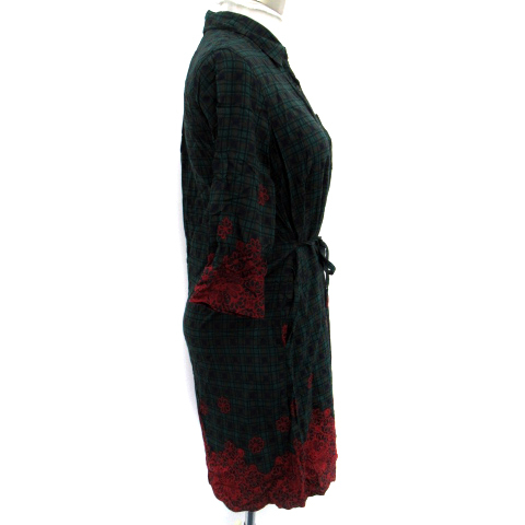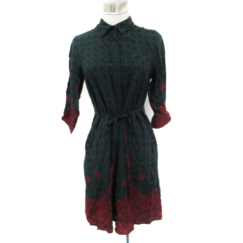 アズノウアズ as know as シャツワンピース ひざ丈 七分袖 チェック柄 切替 総柄 ONE モスグリーン 赤 レッド /SM27 ■MO レディース