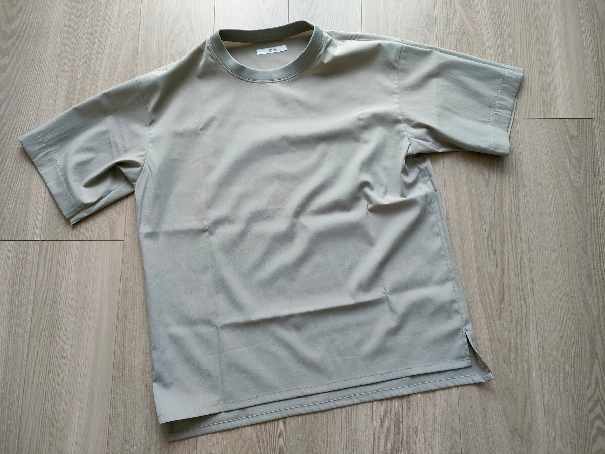このTシャツは、94%のポリエステルと6%のリネンで構成されており、軽量で通気性に優れています。リネンの混合により、肌触りが良く、快適な着心地を提供します。