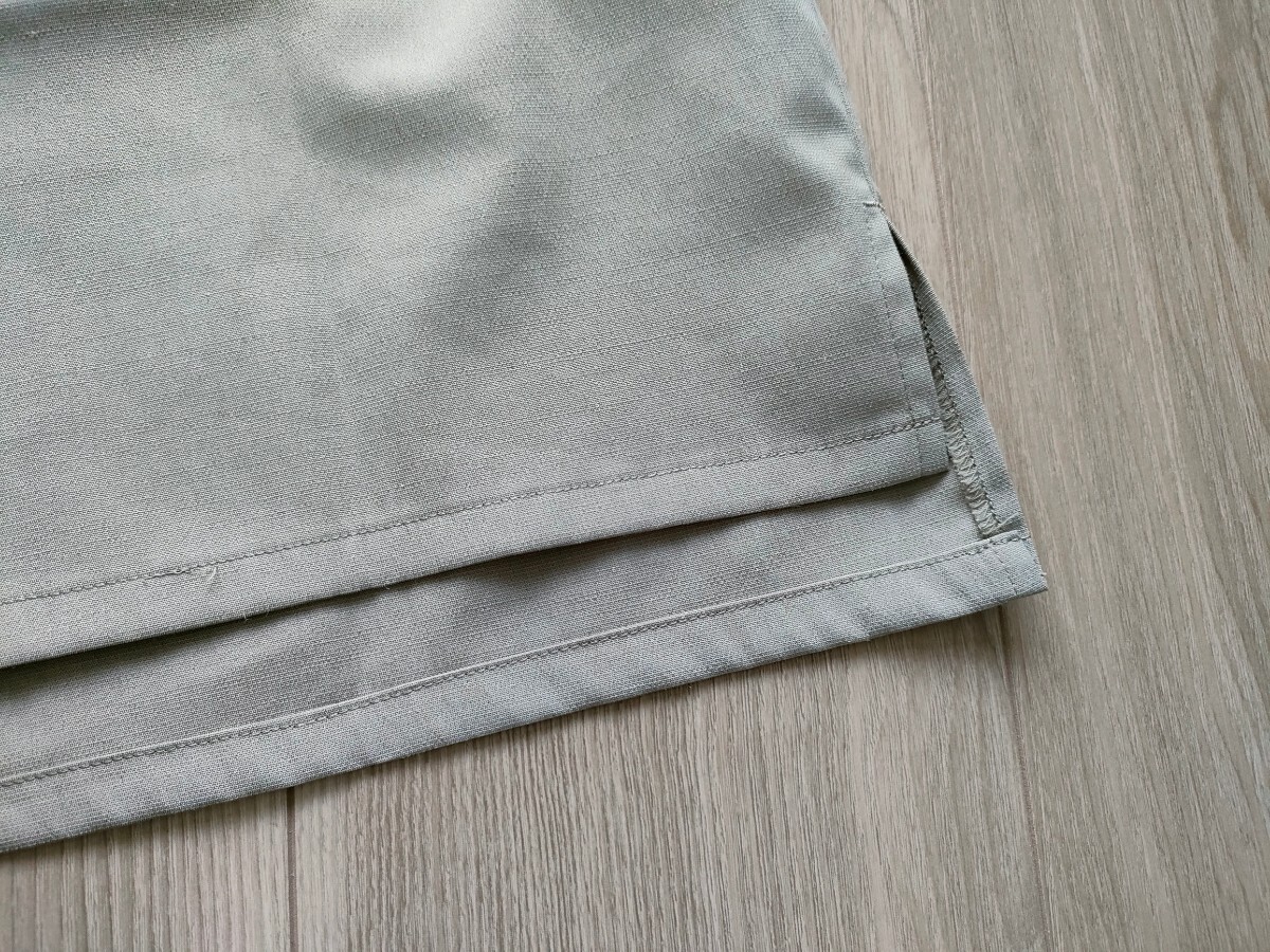 シンプルなグレーのデザインで、どんなスタイルにも合わせやすく、カジュアルからビジネスカジュアルまで幅広く活躍します。サイドスリットが施されており、動きやすさも考慮されています。