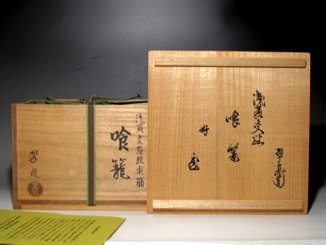 中村翠嵐 浅黄交趾喰籠 裏千家十五世鵬雲斎花押の逸品k712