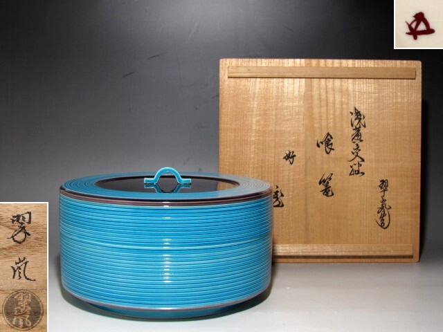 ★中村翠嵐 浅黄交趾喰籠 裏千家十五世鵬雲斎花押の逸品★