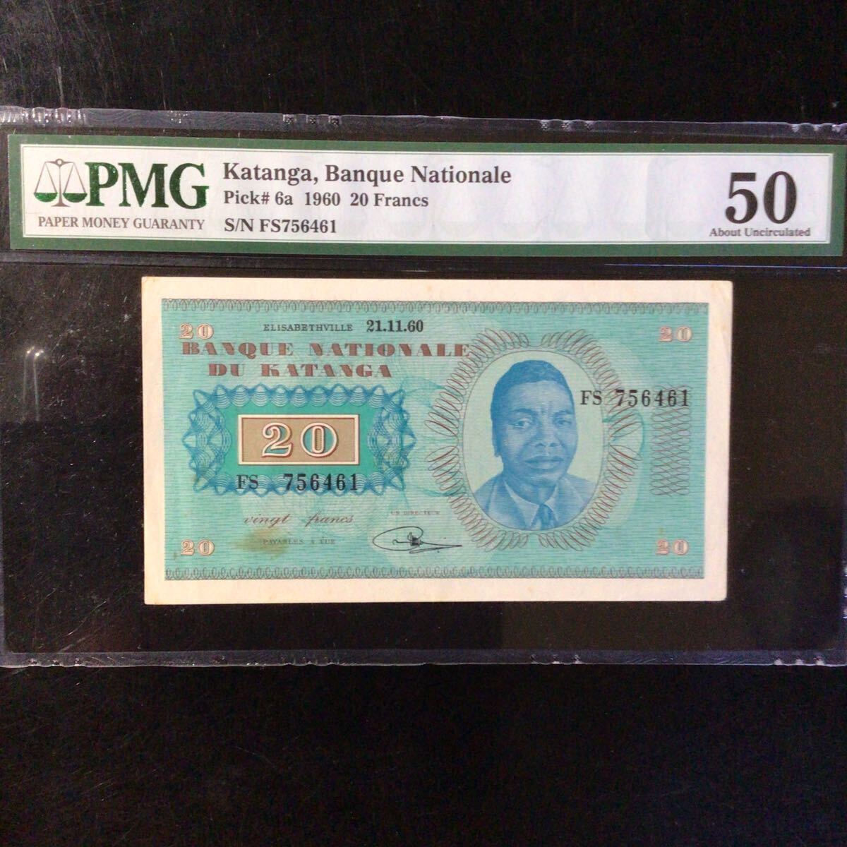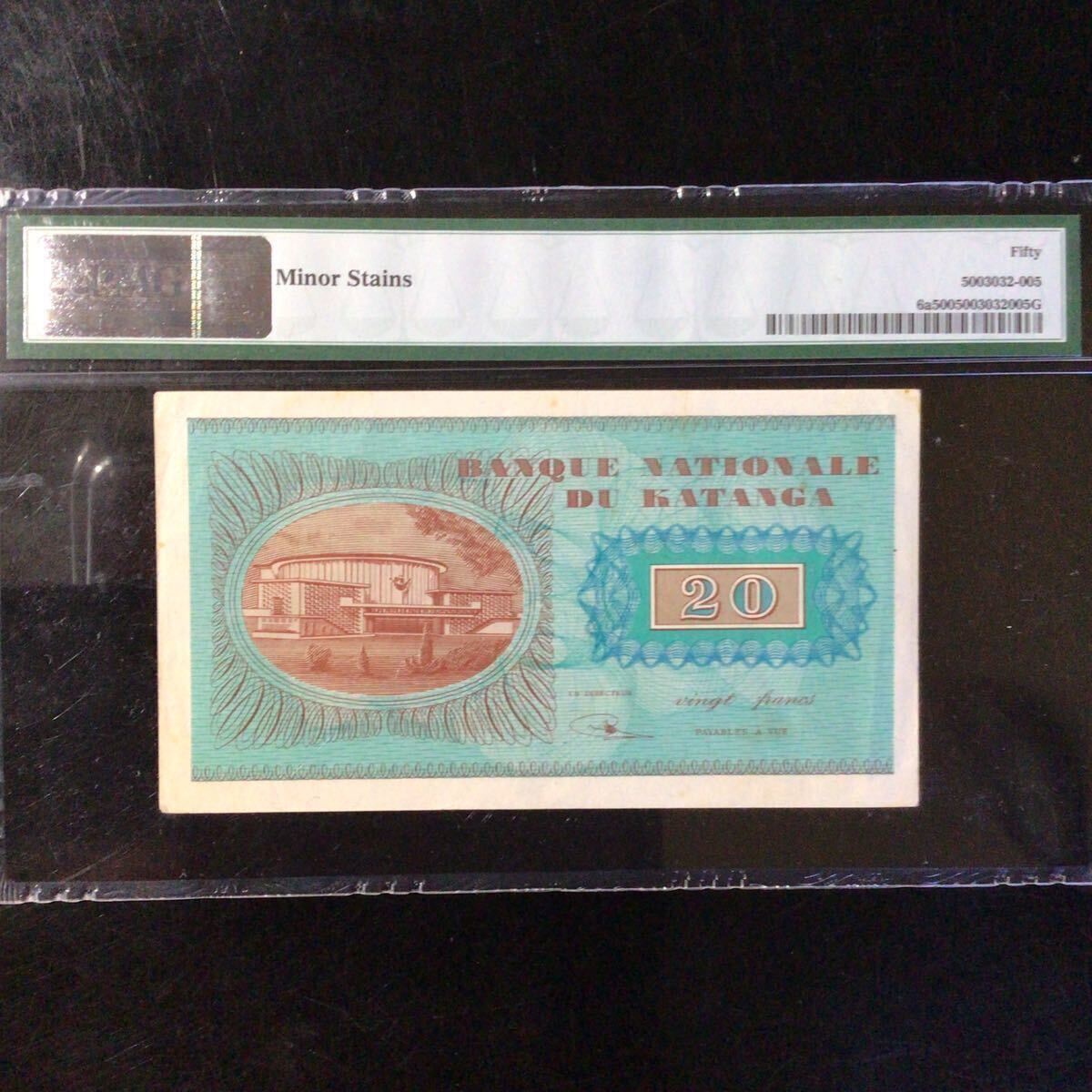 カタンガ《国立銀行》20フラン【1960】『PMGグレーディング鑑定 未使用 50』*状態表示については、個人によって多少の違いがありますが画像にて判断し納得して頂ける方のみ入札して下さい。