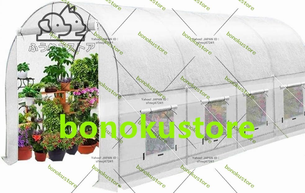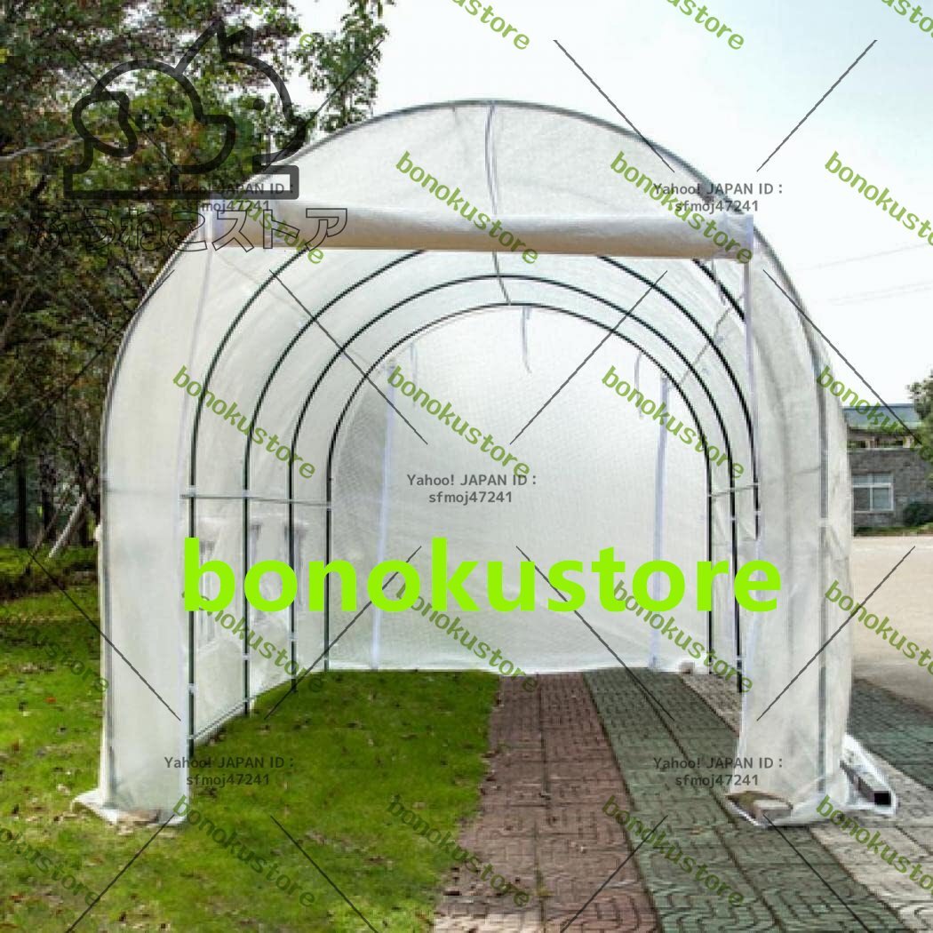 大好評★多機能◆中型いタイプ温室効果ハウス 植物保温 園芸設備 プランテーション 栽培 資材置場 カーポート両門/6窓360x215x220cm白