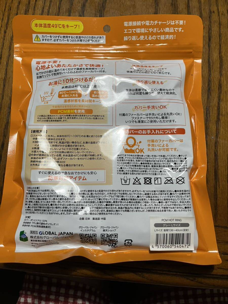 グローバルジャパン 首元 ホット 温熱 リング L カバー付き 電池不要 PCM HOT RING グレー