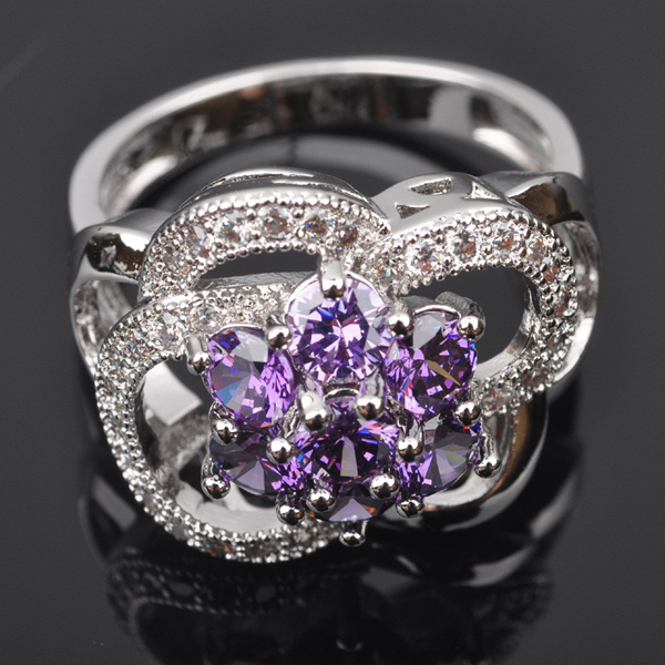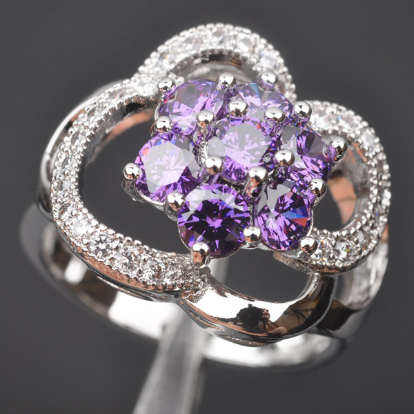 【 14金ホワイトゴールドフィルド アメジストフラワーリングFA 18号 】 | ||||