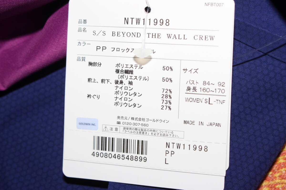未使用ノースフェイス レディースL 紫紺 THE NORTH FACE半袖Tシャツ ショートスリーブビヨンドザウォールクルー NTW11998 送料無料