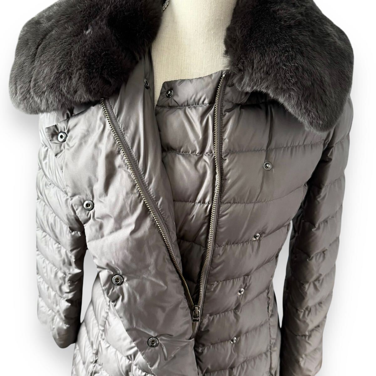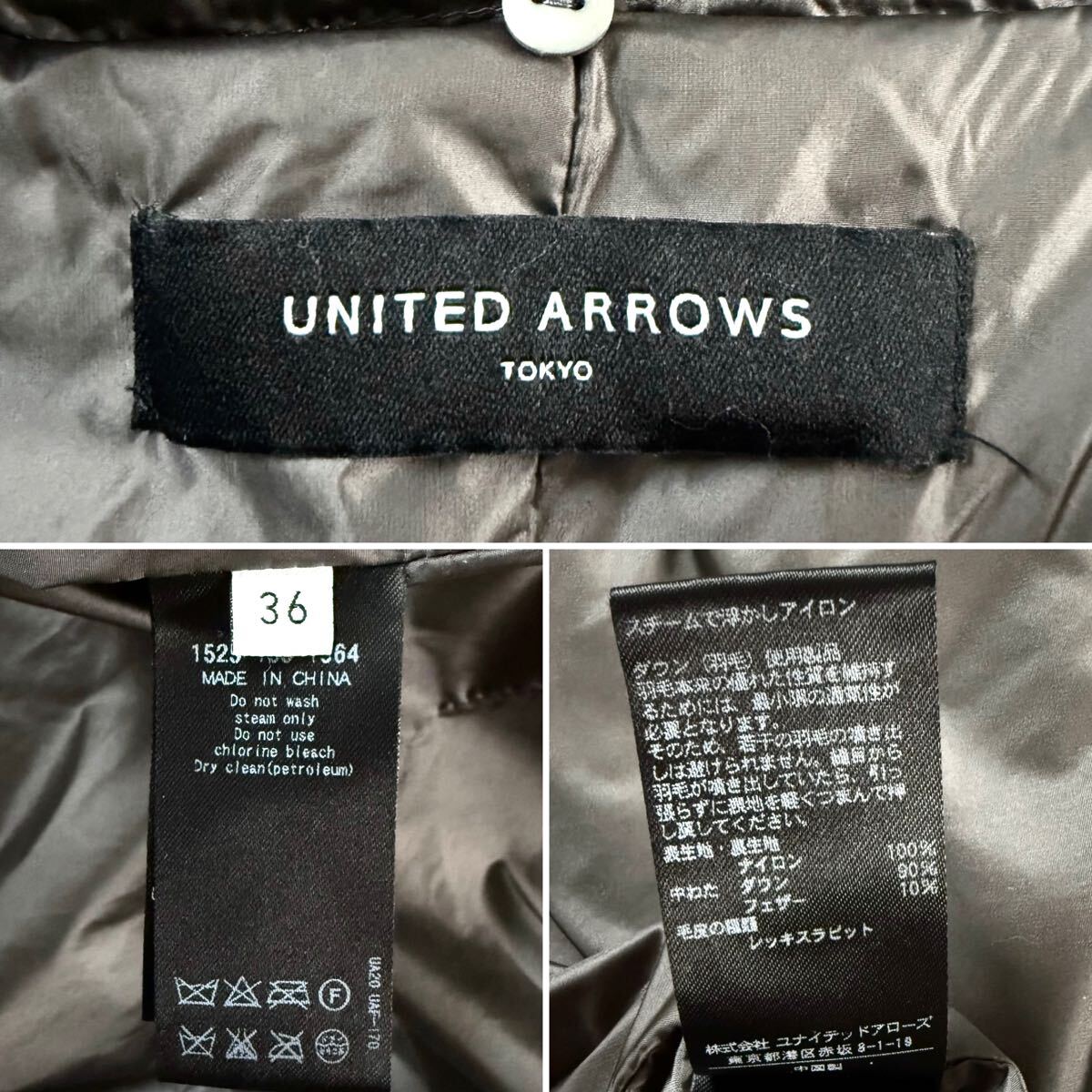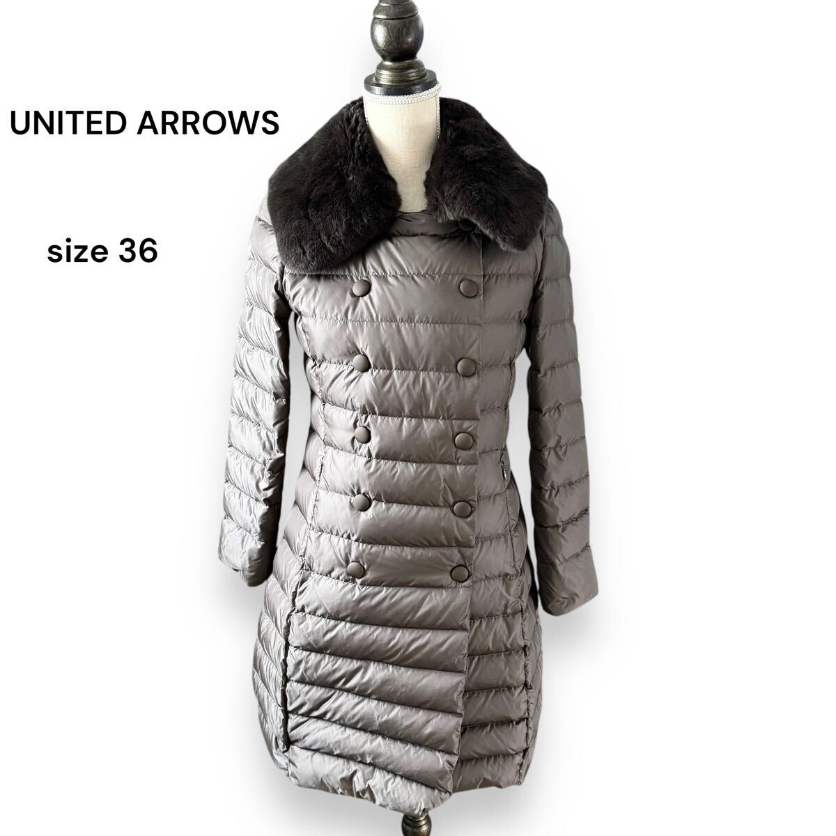 極美品 UNITED ARROWS ユナイテッドアローズ 2way ダウン コート ジャケット レッキスラビットファー グレー レディース アウター 36 S