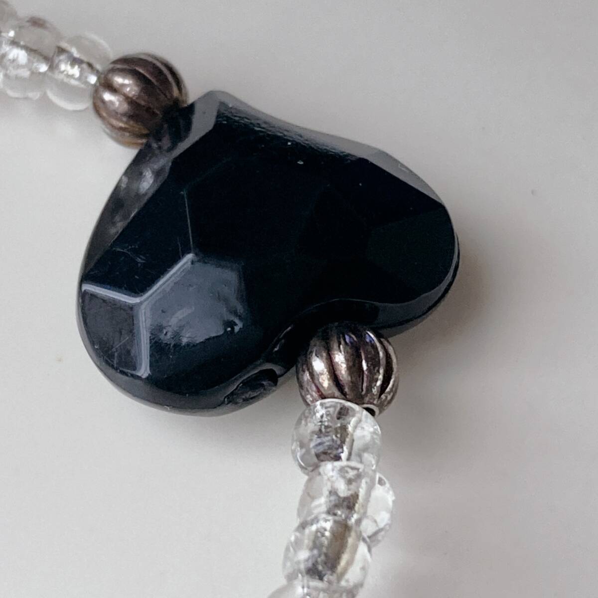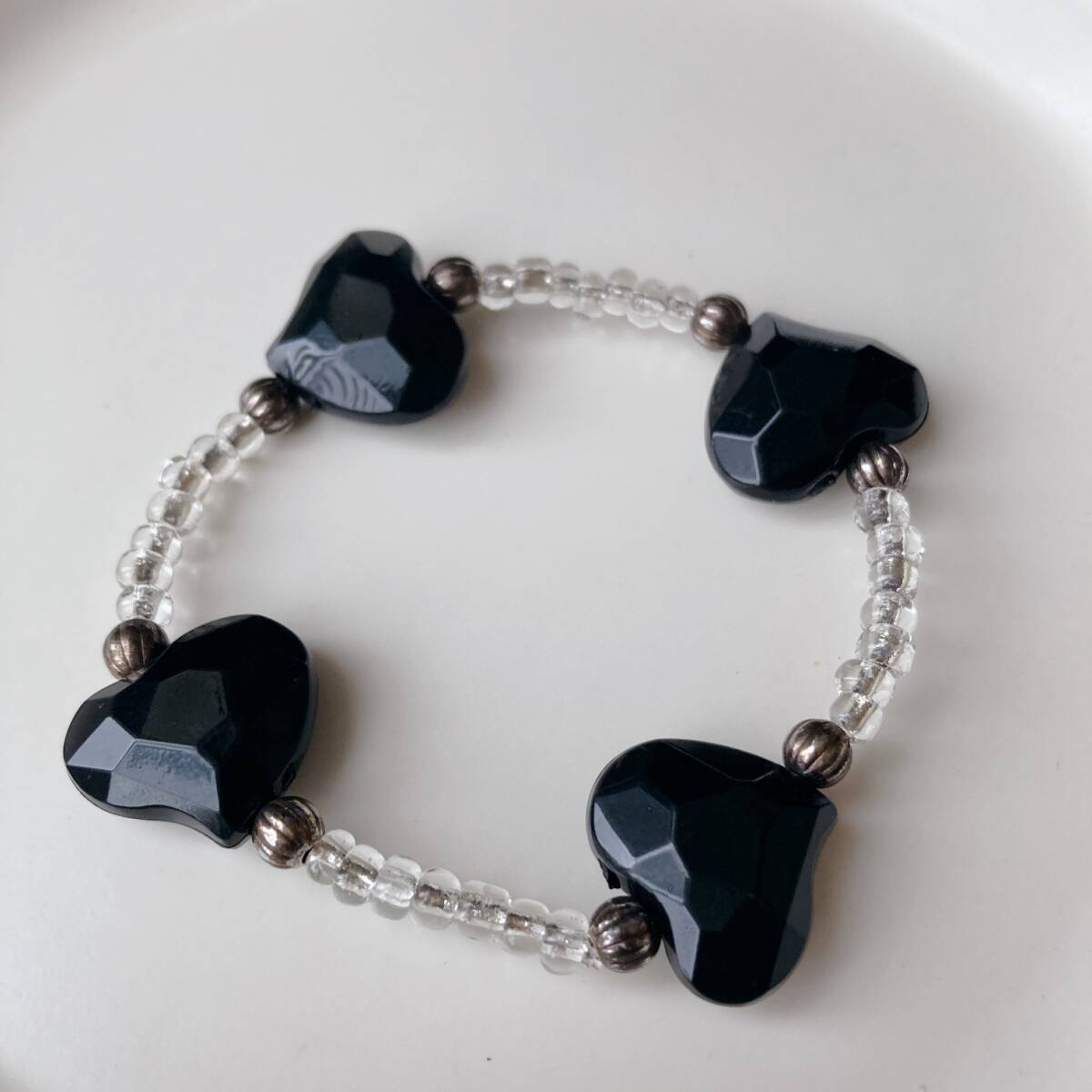 ブレスレット ビーズ ブラック ハート 多面カット クリスタル ☆Vintage jewelry accessories R0089