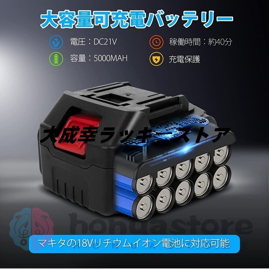 大容量の高出力高耐久モーターユニット搭載しており、電圧21Vでコードレスでもハイパワーが長時間