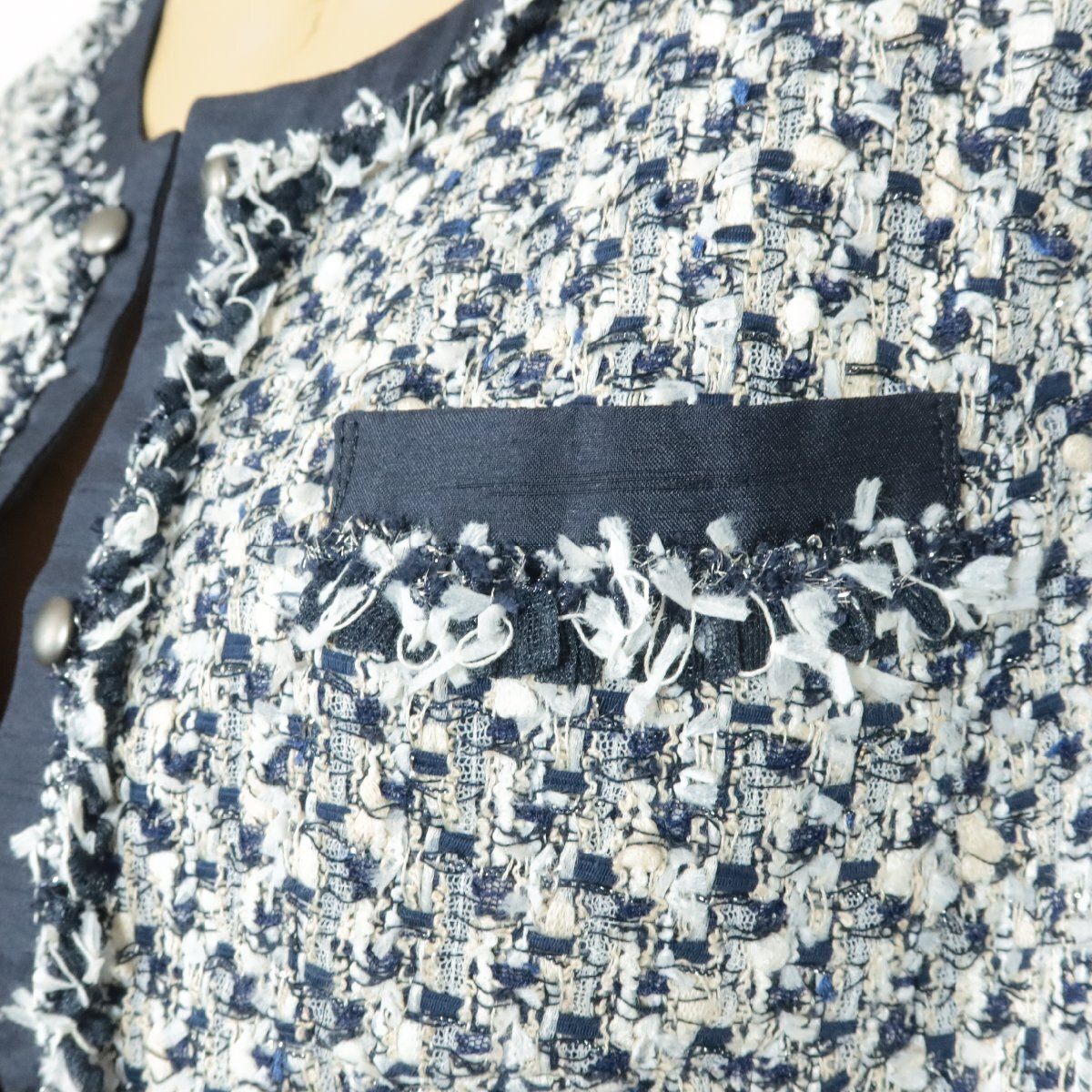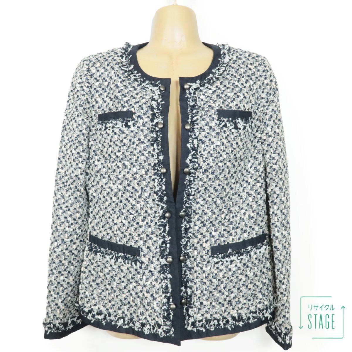 商品説明 | 【実寸約】 肩幅38袖丈58バスト88着丈54 (cm) 【サイズ表記】 9 【素材】コットン48ナイロン40ポリエステル6アクリル6 【状態】使用感少なめの美品 【デザイン】 ネイビー×白系 大人フェミニンな 長袖のノーカラージャケットです。 凹凸がありラメ糸がきらめく素材がゴージャス♪ フロントに並んだマットなボタン飾りもおしゃれです。 フロントは真ん中にボタンとループが一つあるだけのデザインです。 薄い肩パッドあり。 裏地あり。 フロントにポケット4つあり。 華やかで存在感のある一枚です。 |