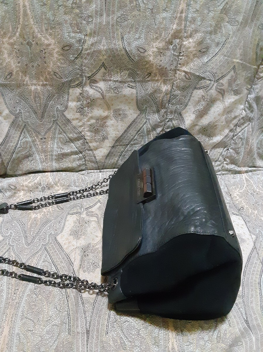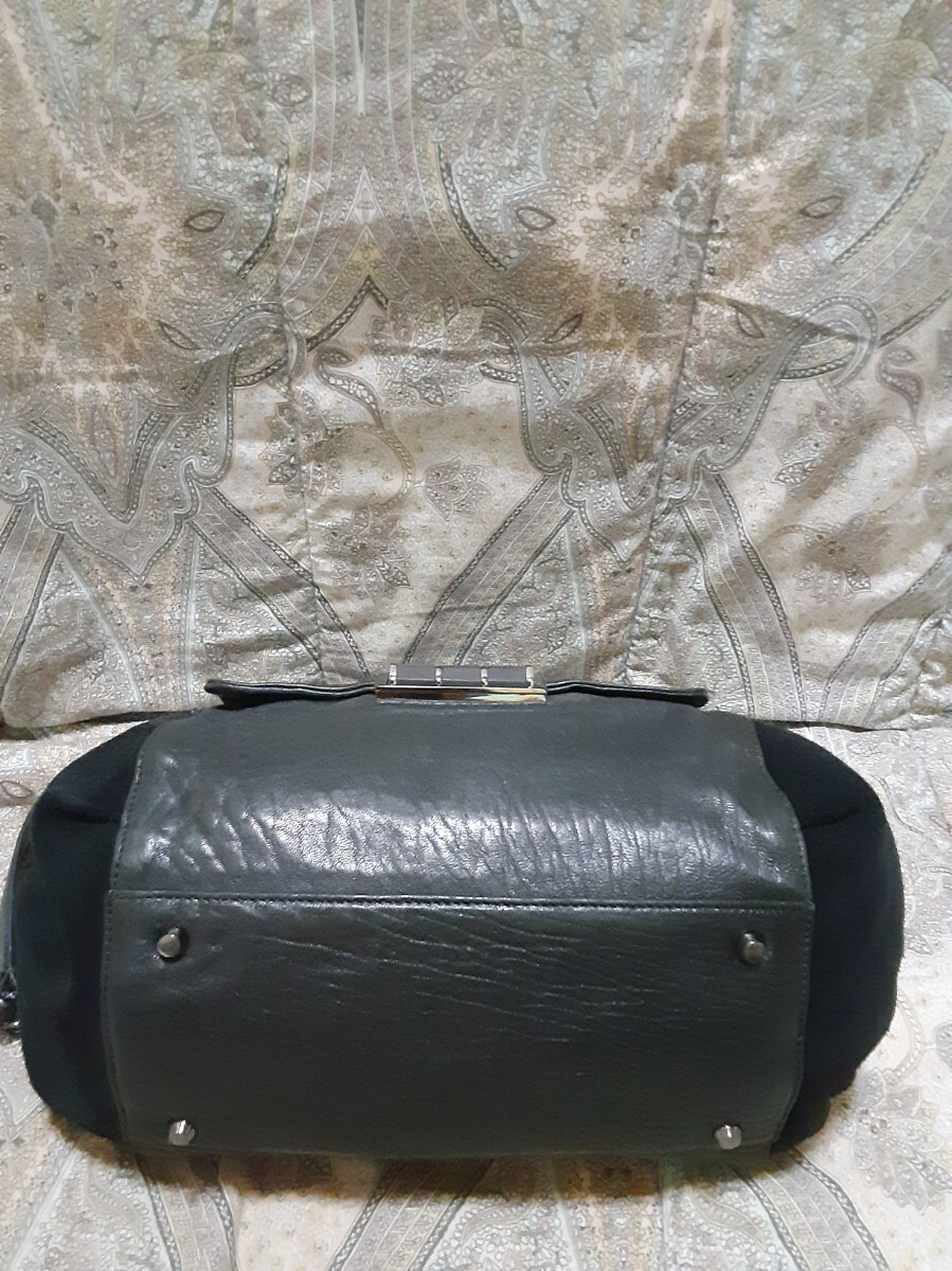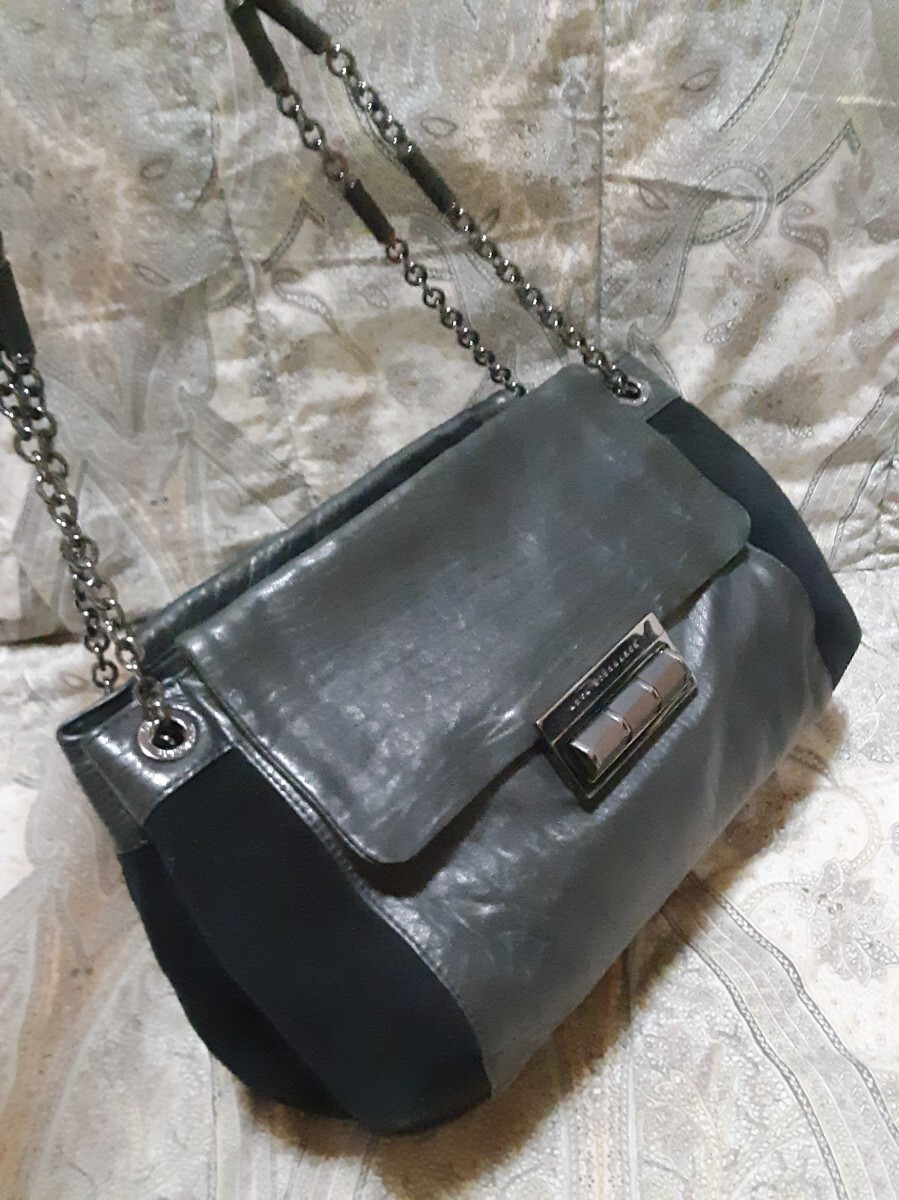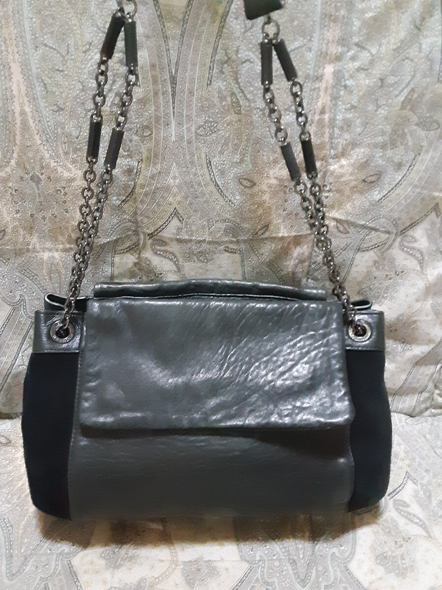 ☆シボ革にスエード革コンビの重量感のあるバッグです。