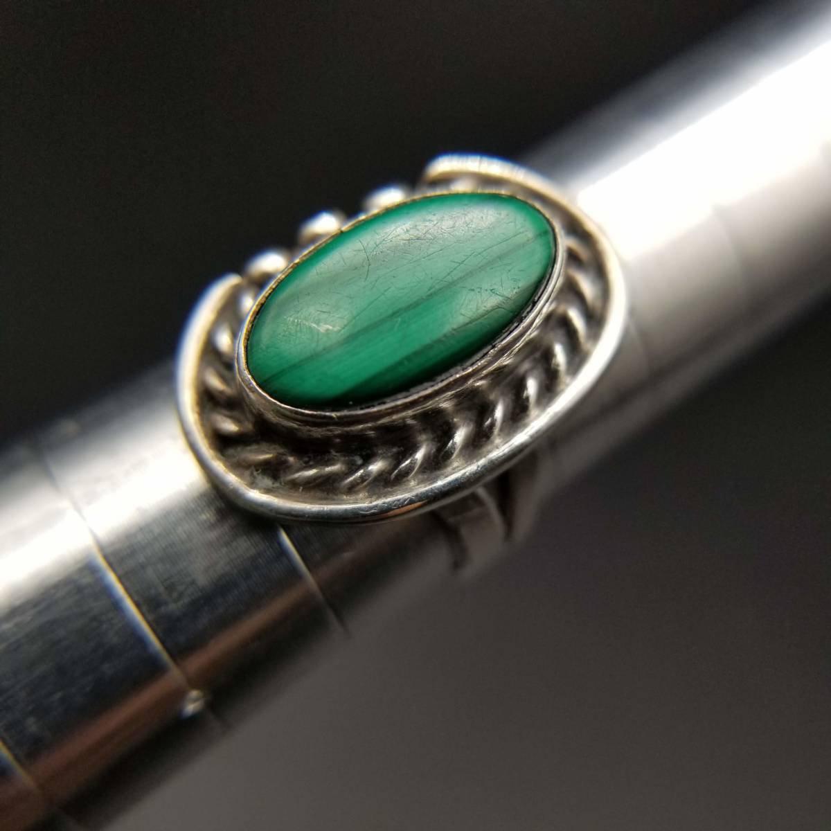 マラカイト ケーブルリム アシメントリー 925 シルバー ヴィンテージ リング 銀 指輪 サウスウェスタンジュエリー 小さめサイズ YMJ3