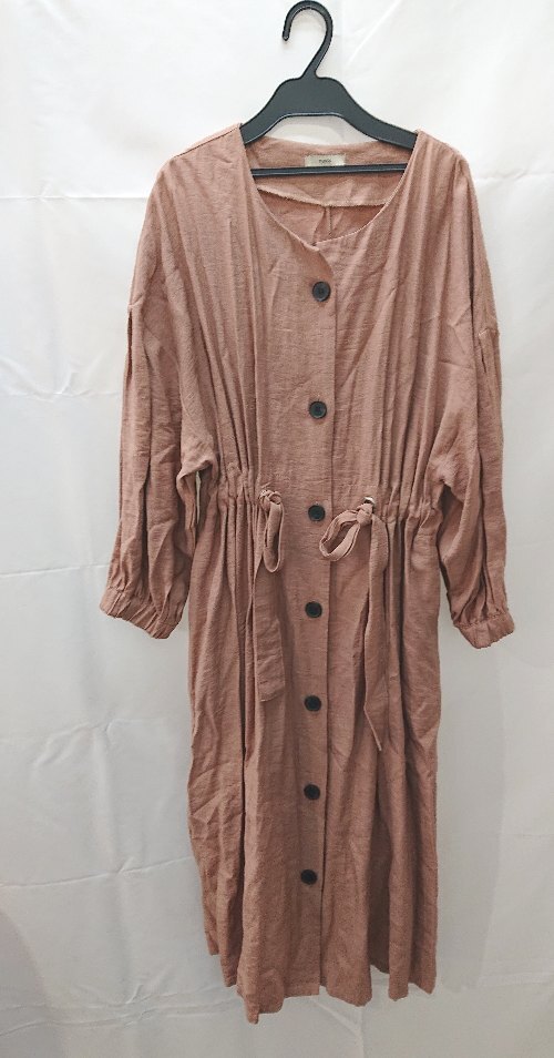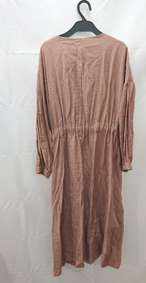 ◇ ◎ mystic ミスティック フロントボタン Uネック 長袖 ロング ワンピース サイズF ピンクベージュ レディース E