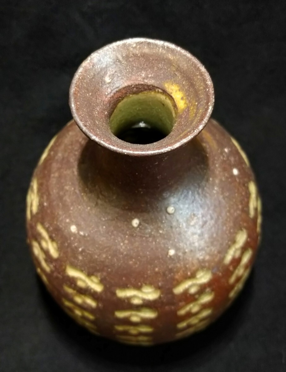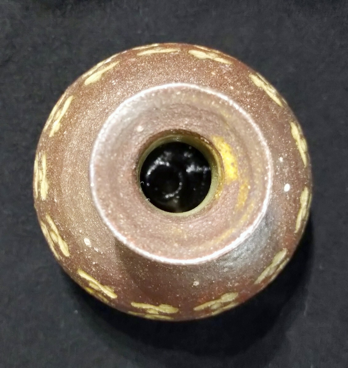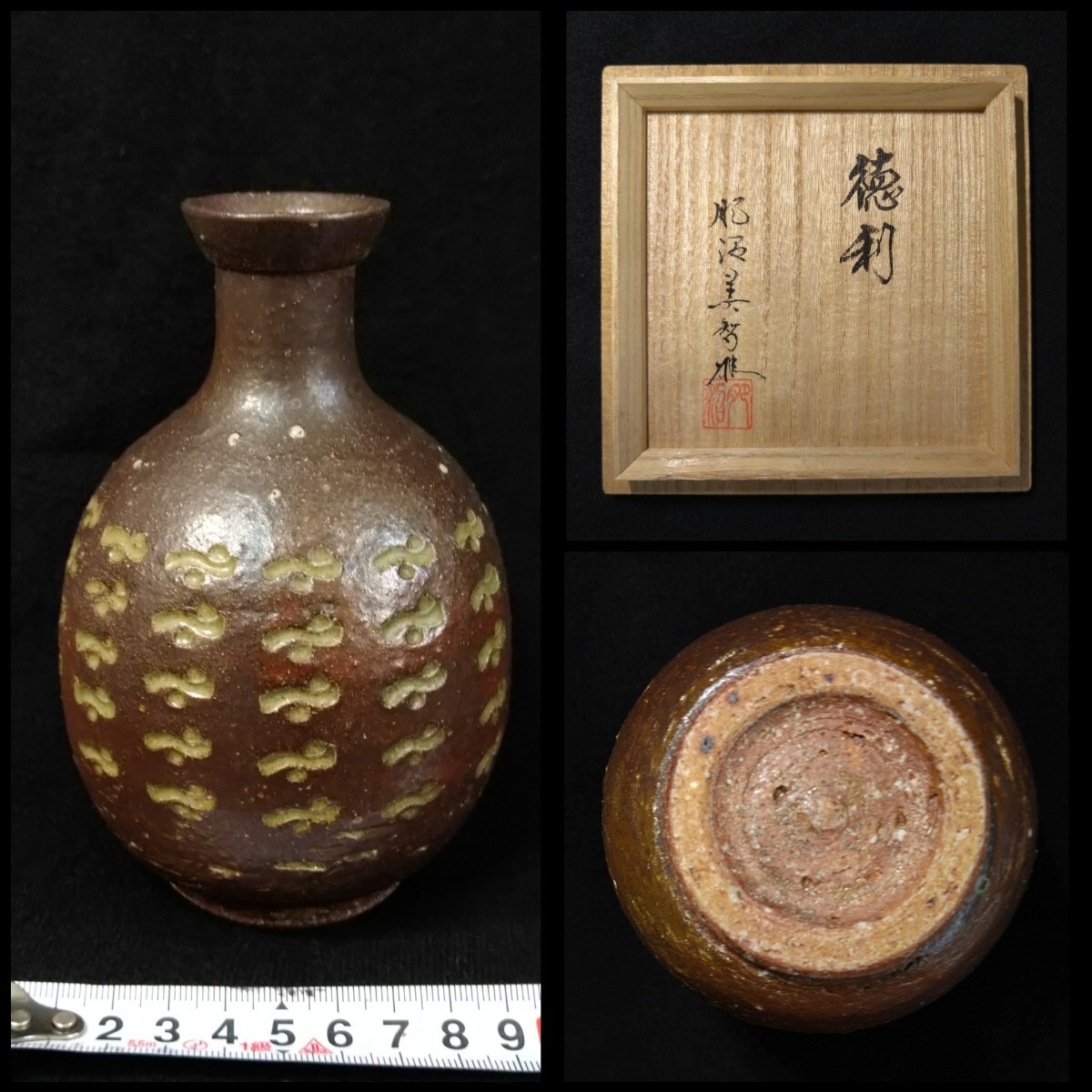時を超越したような洗練されたフォルムを擁する、肥沼美智雄(1936-2020)先生の美しい酒器でございます。素人採寸で申し訳ございませんが、径9.3cm、高さ14.0cmでございます。
