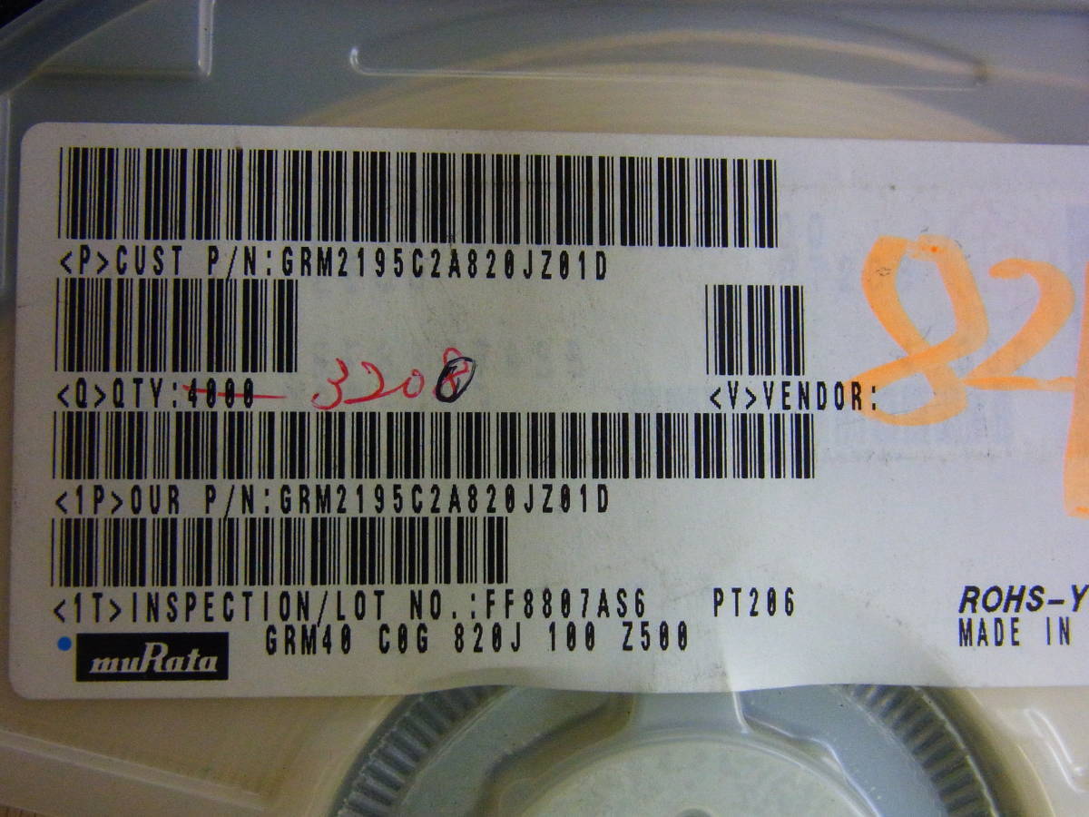 村田  2125型セラミックコンデンサ 82pF±5% 100V GRM2195C2A820JZ01D 3200個-BOX147/2巻